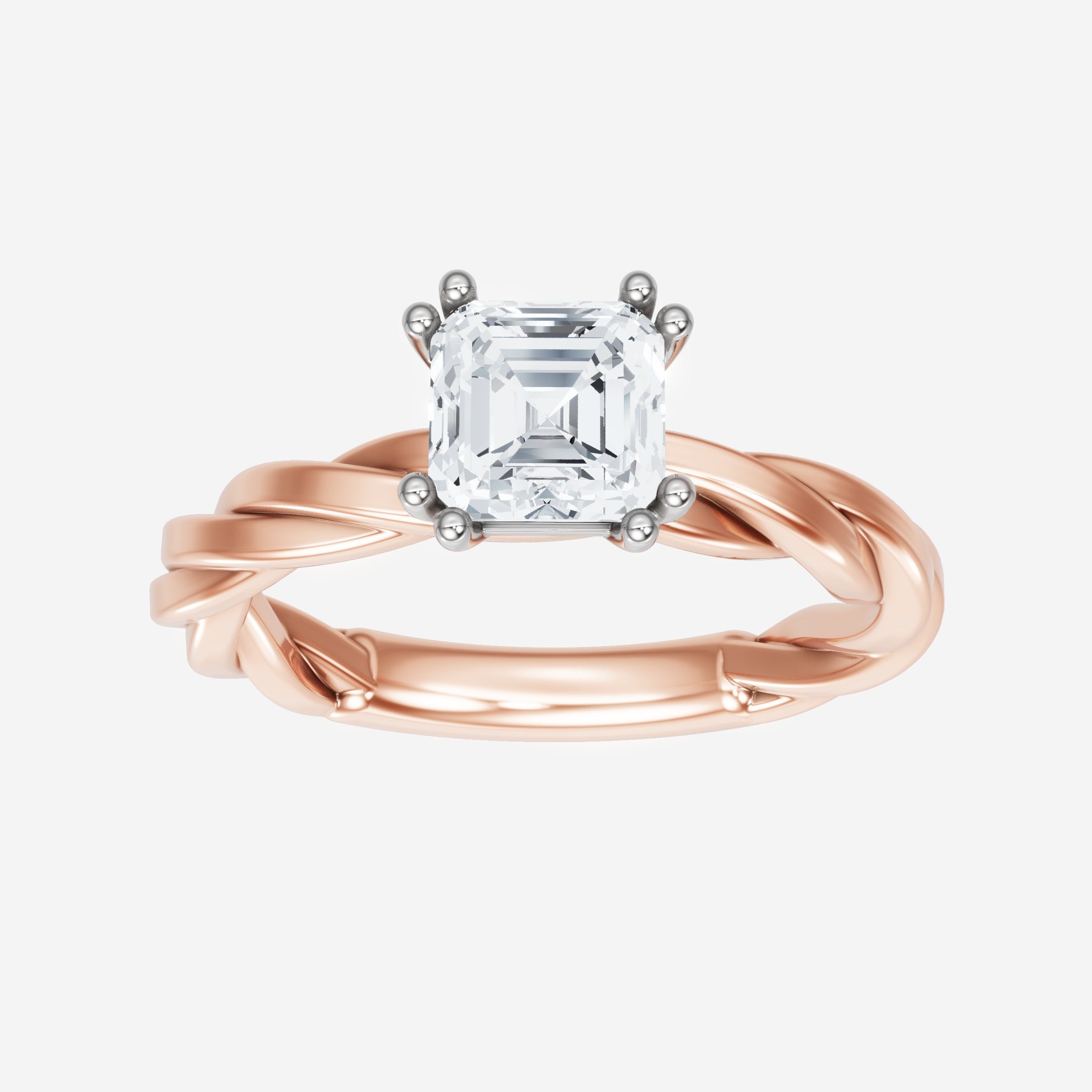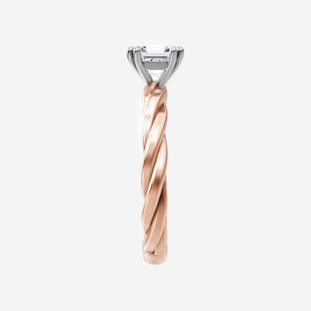 You’ve designed a ring that reflects lasting elegance and grace! Crafted from 18k Rose White Dual Tone, this exquisite Asscher lab-grown diamond is the centerpiece of this unique design. This Rope Plain Shank with a 4 Prong Split Prong head showcases the brilliance of the Asscher diamond, creating a timeless look. Ideal for those who seek both beauty and meaning, this ring will stand as a testament to cherished memories.