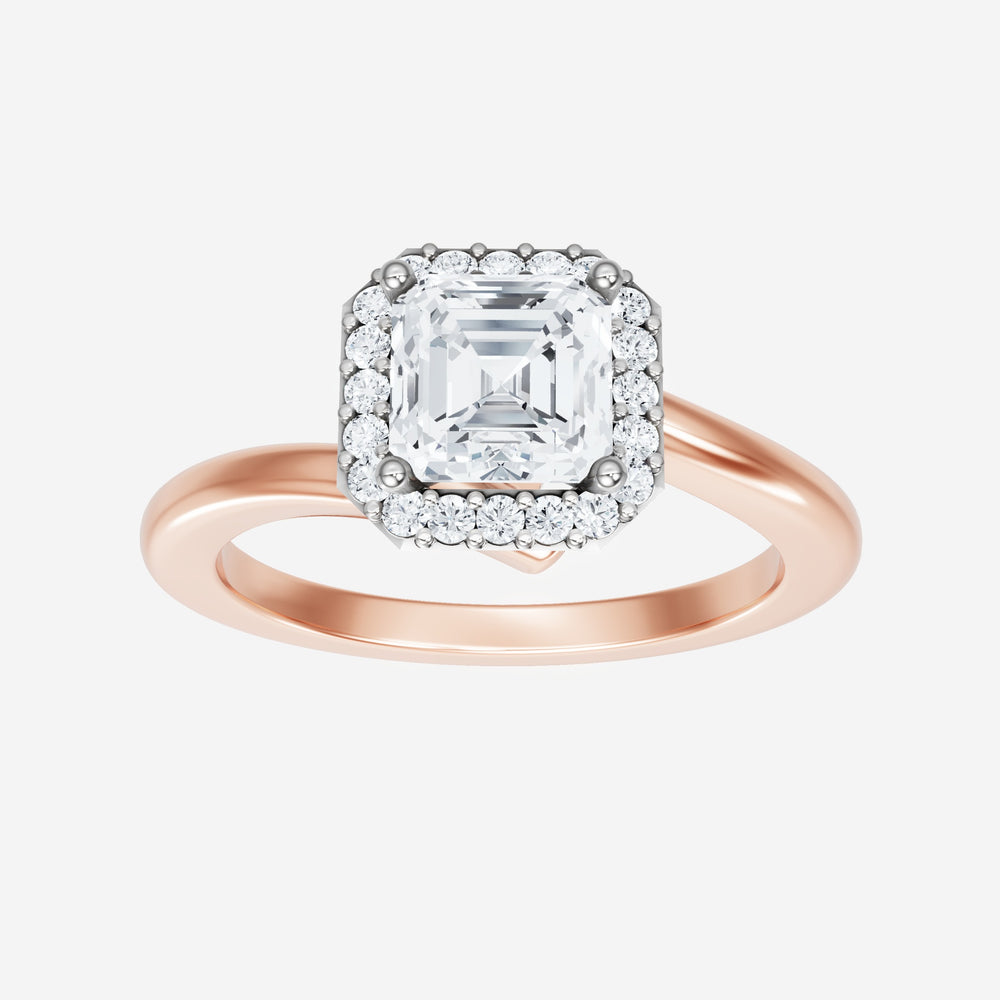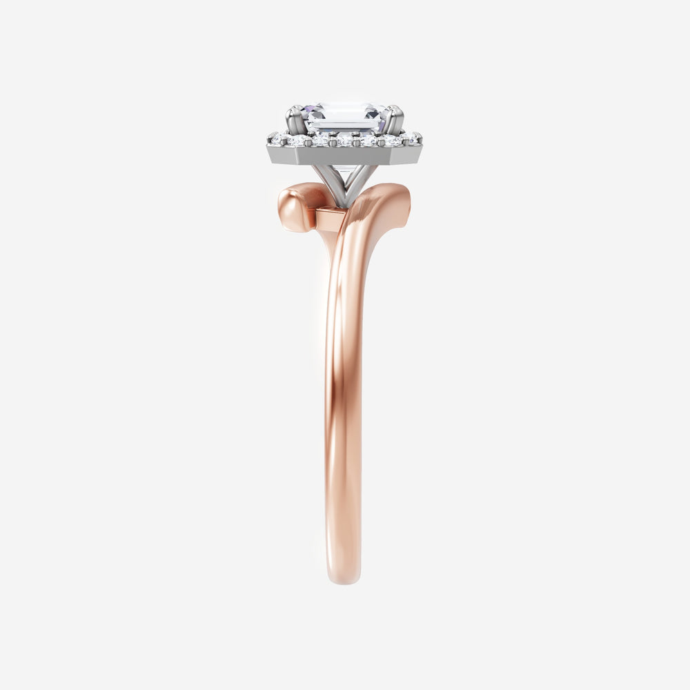 You’ve designed a ring that reflects lasting elegance and grace! Crafted from 18k Rose White Dual Tone, this exquisite Asscher lab-grown diamond is the centerpiece of this unique design. This Bypass Shank with a Single Halo head showcases the brilliance of the Asscher diamond, creating a timeless look. With this ring, celebrate every moment of joy, success, and love.