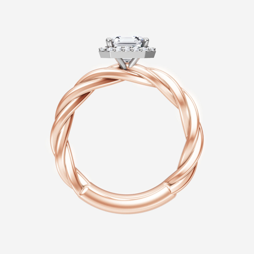 You’ve designed a ring that reflects lasting elegance and grace! Crafted from 18k Rose White Dual Tone, this exquisite Asscher lab-grown diamond is the centerpiece of this unique design. This Rope Plain Shank with a Single Halo head showcases the brilliance of the Asscher diamond, creating a timeless look. This stunning ring makes the perfect symbol of everlasting love and devotion.