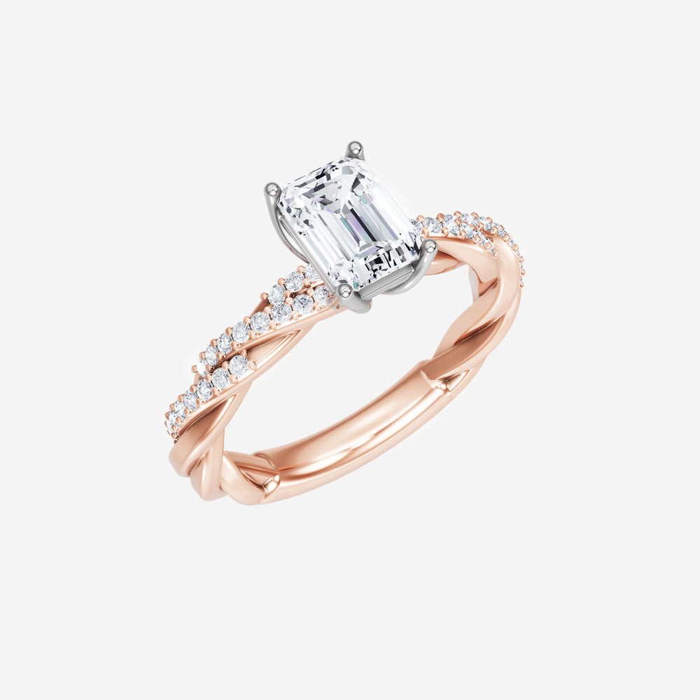 You’ve designed a ring that reflects lasting elegance and grace! Crafted from 18k Rose White Dual Tone, this exquisite Emerald lab-grown diamond is the centerpiece of this unique design. This Rope Diamond Shank with a 4 Prong Flower Head head showcases the brilliance of the Emerald diamond, creating a timeless look. Ideal for those who seek both beauty and meaning, this ring will stand as a testament to cherished memories.