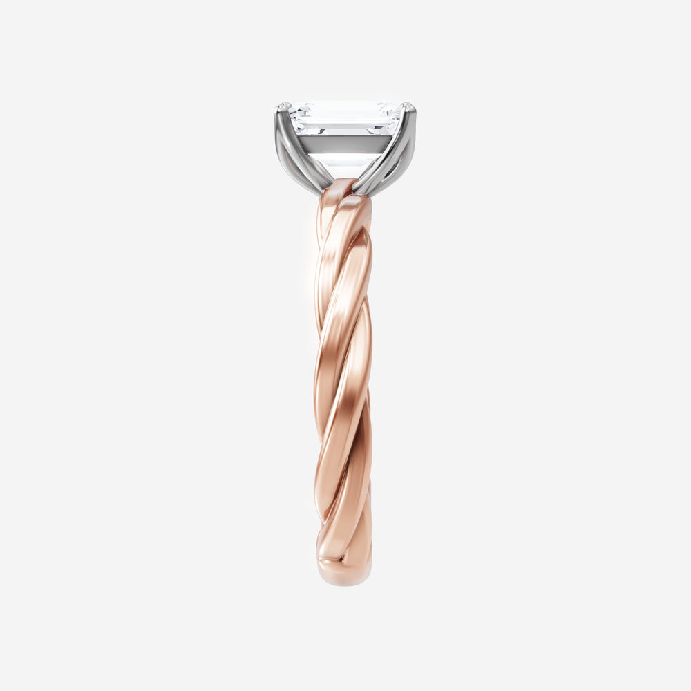 You’ve designed a ring that reflects lasting elegance and grace! Crafted from 18k Rose White Dual Tone, this exquisite Emerald lab-grown diamond is the centerpiece of this unique design. This Rope Plain Shank with a 4 Prong Flower Head head showcases the brilliance of the Emerald diamond, creating a timeless look. With this ring, celebrate every moment of joy, success, and love.