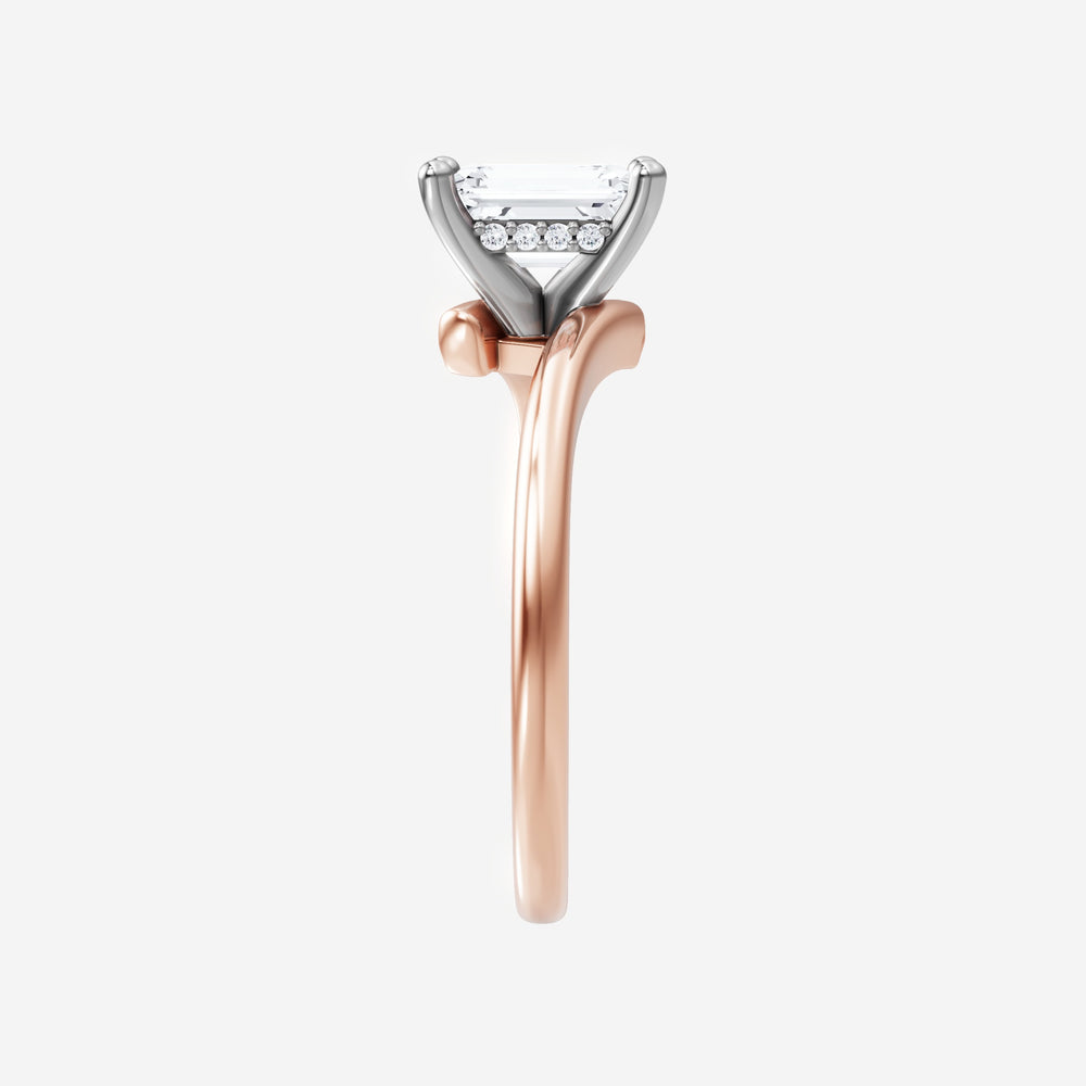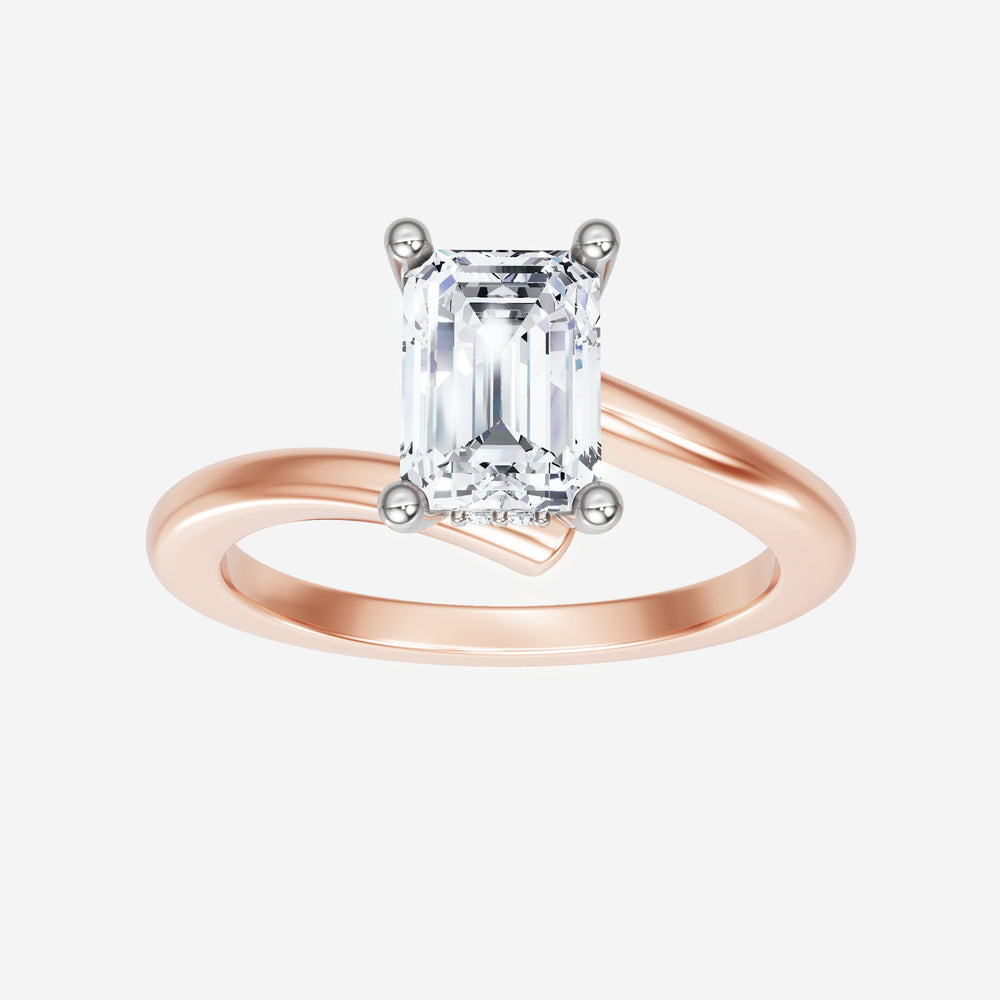 You’ve designed a ring that reflects lasting elegance and grace! Crafted from 18k Rose White Dual Tone, this exquisite Emerald lab-grown diamond is the centerpiece of this unique design. This Bypass Shank with a Hidden Halo head showcases the brilliance of the Emerald diamond, creating a timeless look. This stunning ring makes the perfect symbol of everlasting love and devotion.