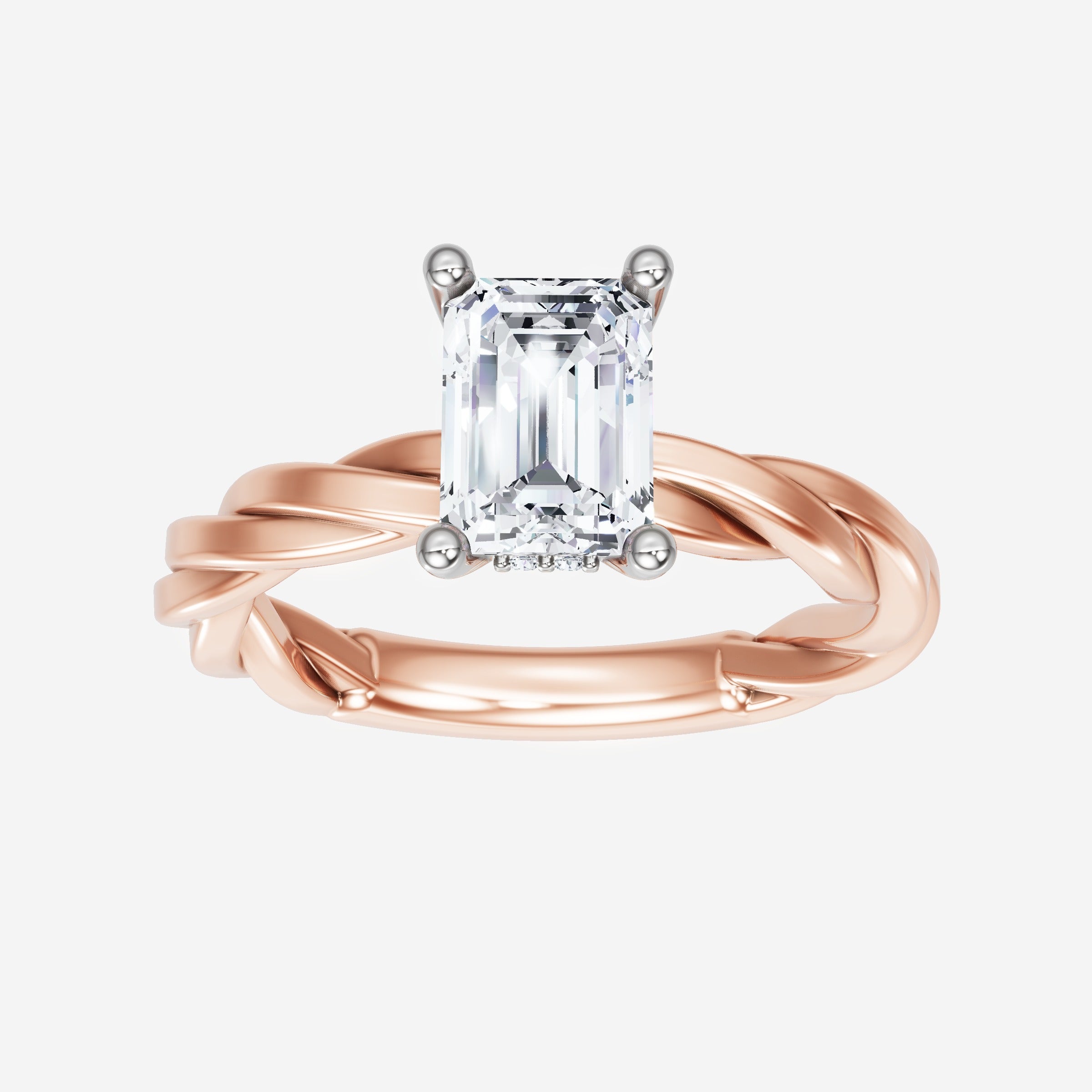You’ve designed a ring that reflects lasting elegance and grace! Crafted from 18k Rose White Dual Tone, this exquisite Emerald lab-grown diamond is the centerpiece of this unique design. This Rope Plain Shank with a Hidden Halo head showcases the brilliance of the Emerald diamond, creating a timeless look. It's a piece of elegance and beauty, perfect for marking life's most beautiful occasions.