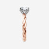 You’ve designed a ring that reflects lasting elegance and grace! Crafted from 18k Rose White Dual Tone, this exquisite Oval lab-grown diamond is the centerpiece of this unique design. This Rope Plain Shank with a 4 Prong Flower Head head showcases the brilliance of the Oval diamond, creating a timeless look. This elegant piece is the perfect symbol of love, strength, and timeless beauty.