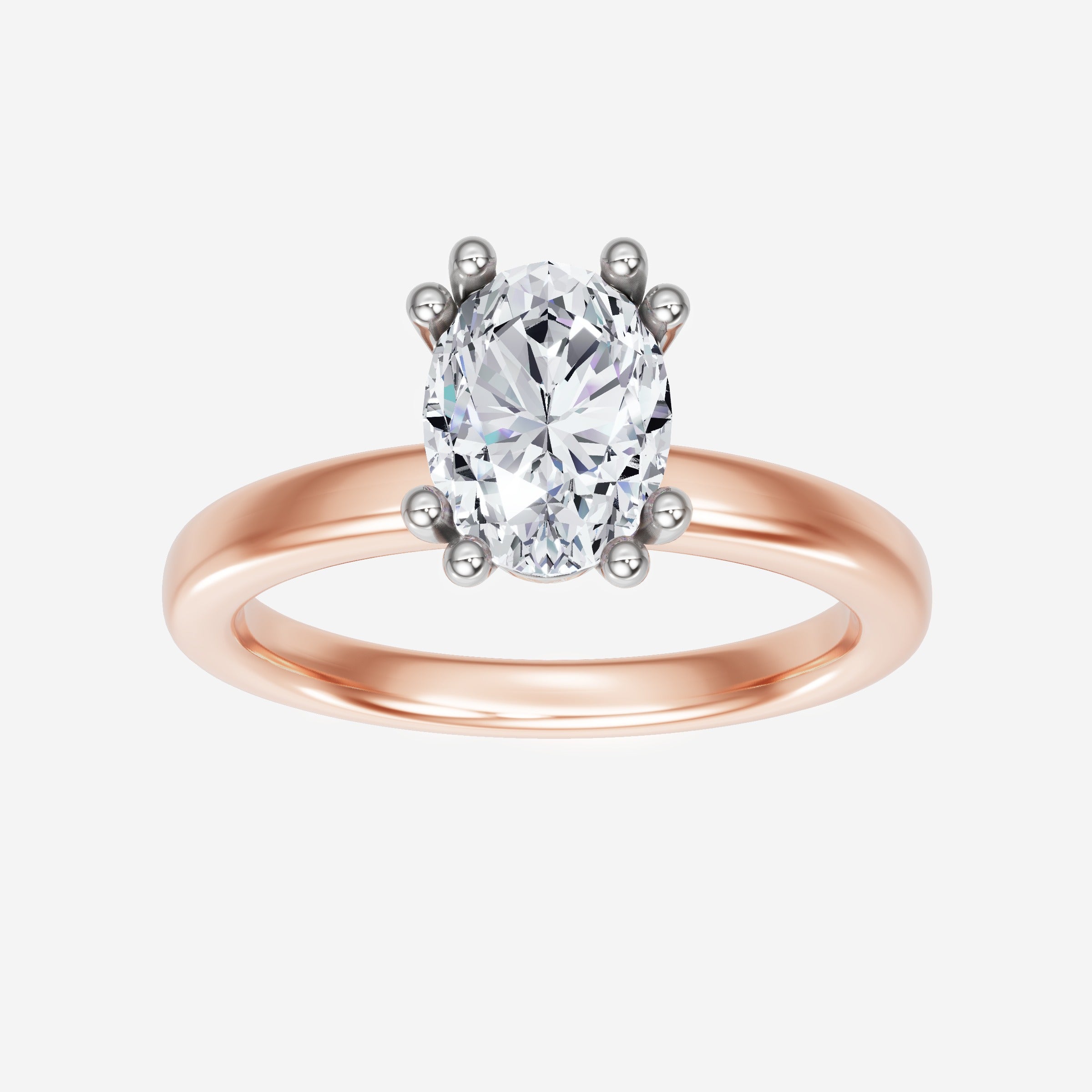 You’ve designed a ring that reflects lasting elegance and grace! Crafted from 18k Rose White Dual Tone, this exquisite Oval lab-grown diamond is the centerpiece of this unique design. This Basic Plain Shank with a 4 Prong Split Prong head showcases the brilliance of the Oval diamond, creating a timeless look. This ring will become a cherished reminder of life's most treasured moments.