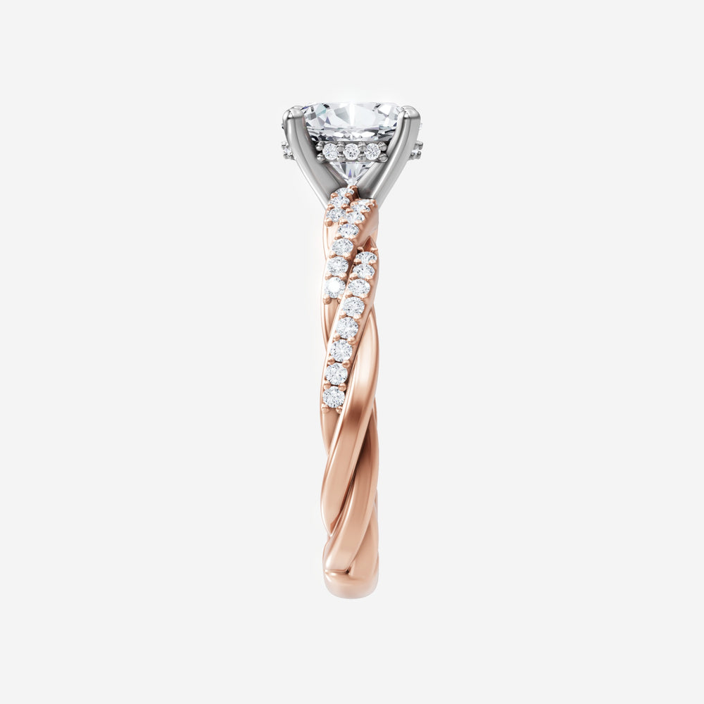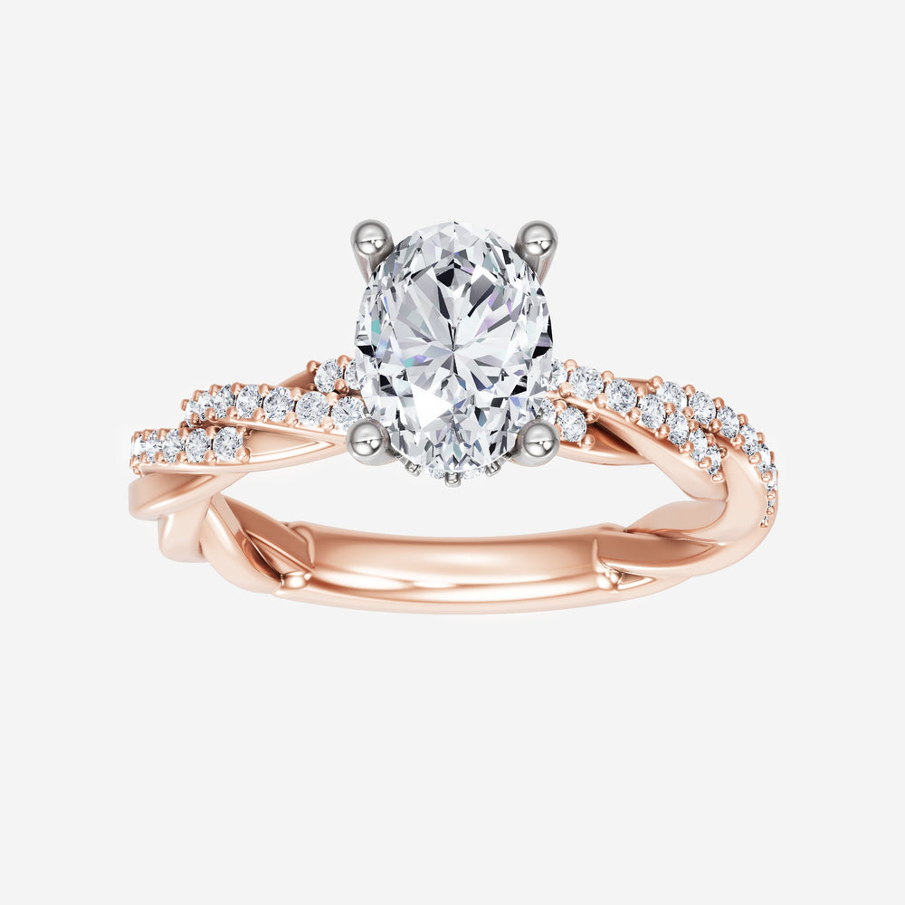 You’ve designed a ring that reflects lasting elegance and grace! Crafted from 18k Rose White Dual Tone, this exquisite Oval lab-grown diamond is the centerpiece of this unique design. This Rope Diamond Shank with a Hidden Halo head showcases the brilliance of the Oval diamond, creating a timeless look. This elegant piece is the perfect symbol of love, strength, and timeless beauty.