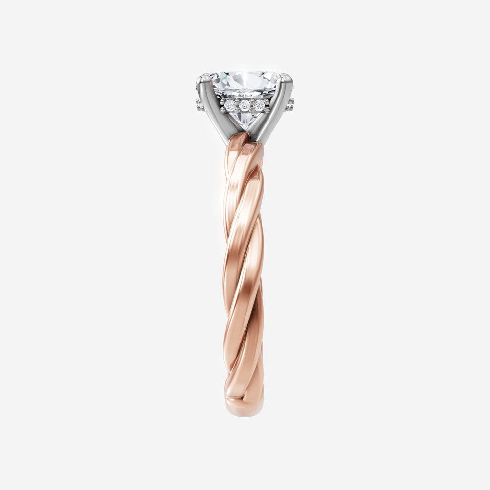 You’ve designed a ring that reflects lasting elegance and grace! Crafted from 18k Rose White Dual Tone, this exquisite Oval lab-grown diamond is the centerpiece of this unique design. This Rope Plain Shank with a Hidden Halo head showcases the brilliance of the Oval diamond, creating a timeless look. This ring will become a cherished reminder of life's most treasured moments.