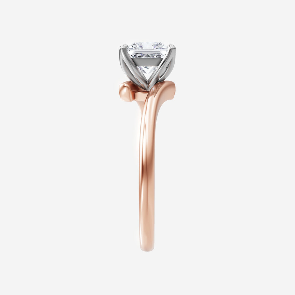 You’ve designed a ring that reflects lasting elegance and grace! Crafted from 18k Rose White Dual Tone, this exquisite Princess lab-grown diamond is the centerpiece of this unique design. This Bypass Shank with a 4 Prong Flower Head head showcases the brilliance of the Princess diamond, creating a timeless look. It's a piece of elegance and beauty, perfect for marking life's most beautiful occasions.