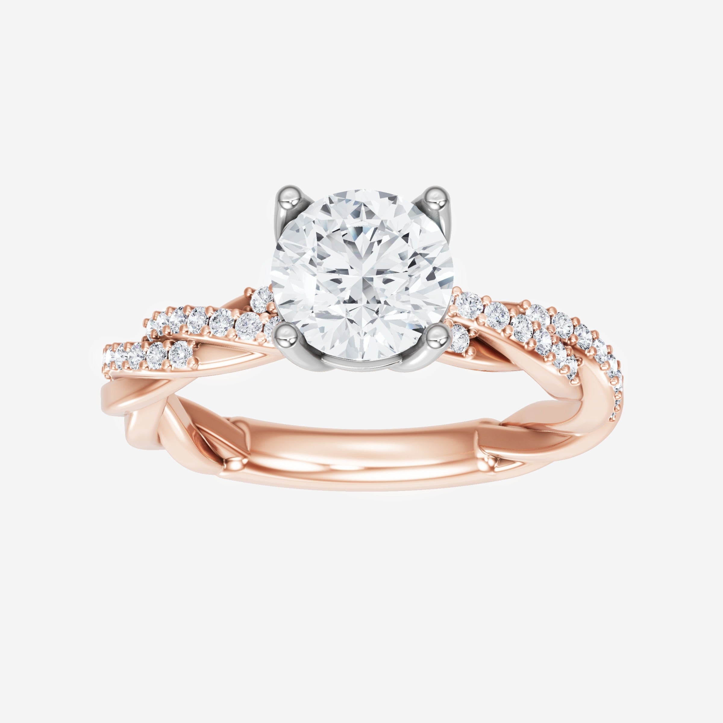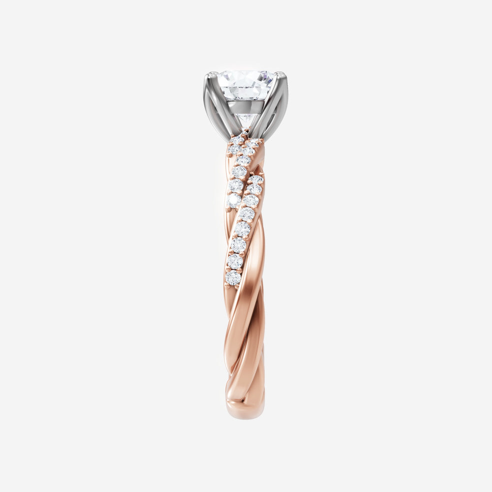You’ve designed a ring that reflects lasting elegance and grace! Crafted from 18k Rose White Dual Tone, this exquisite Round lab-grown diamond is the centerpiece of this unique design. This Rope Diamond Shank with a 4 Prong Flower Head head showcases the brilliance of the Round diamond, creating a timeless look. It's a piece of elegance and beauty, perfect for marking life's most beautiful occasions.