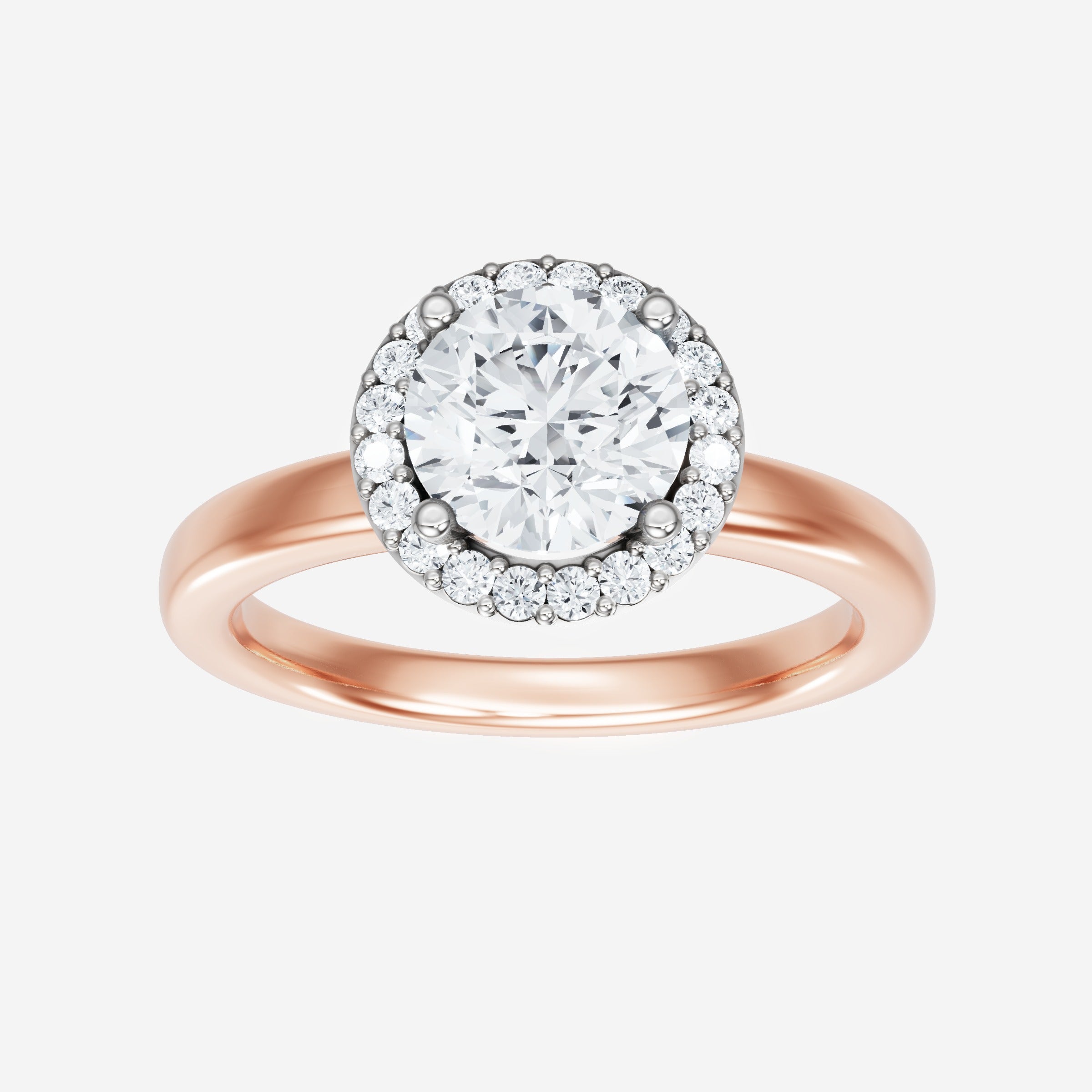 You’ve designed a ring that reflects lasting elegance and grace! Crafted from 18k Rose White Dual Tone, this exquisite Round lab-grown diamond is the centerpiece of this unique design. This Basic Plain Shank with a Single Halo head showcases the brilliance of the Round diamond, creating a timeless look. This ring will become a cherished reminder of life's most treasured moments.