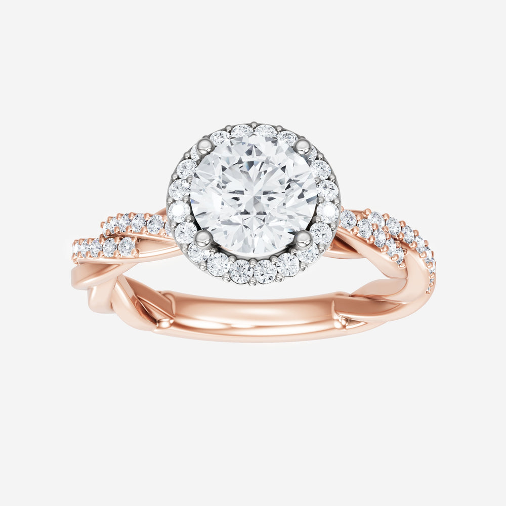You’ve designed a ring that reflects lasting elegance and grace! Crafted from 18k Rose White Dual Tone, this exquisite Round lab-grown diamond is the centerpiece of this unique design. This Rope Diamond Shank with a Single Halo head showcases the brilliance of the Round diamond, creating a timeless look. With this ring, celebrate every moment of joy, success, and love.