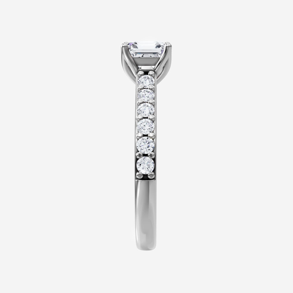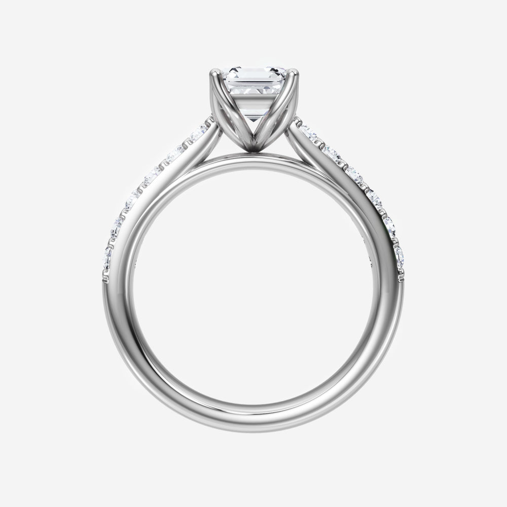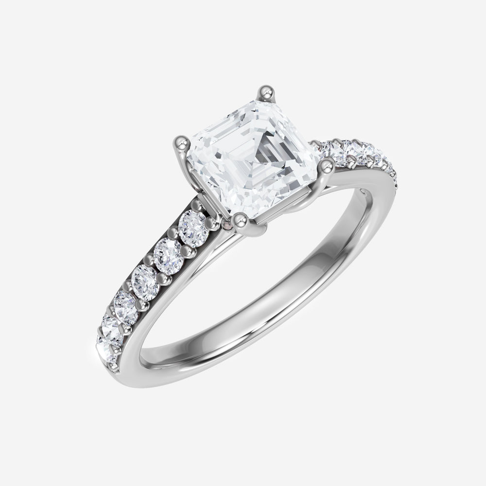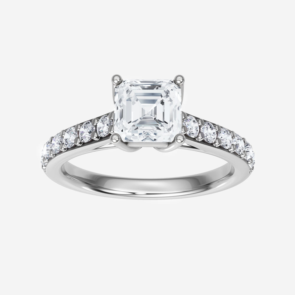 You’ve designed a ring that reflects lasting elegance and grace! Crafted from 18K White Gold, this exquisite Asscher lab-grown diamond is the centerpiece of this unique design. This Cathedral Diamond Shank with a 4 Prong Flower Head head showcases the brilliance of the Asscher diamond, creating a timeless look. Whether as a gift or a personal treasure, this ring will forever symbolize the most meaningful moments in life.