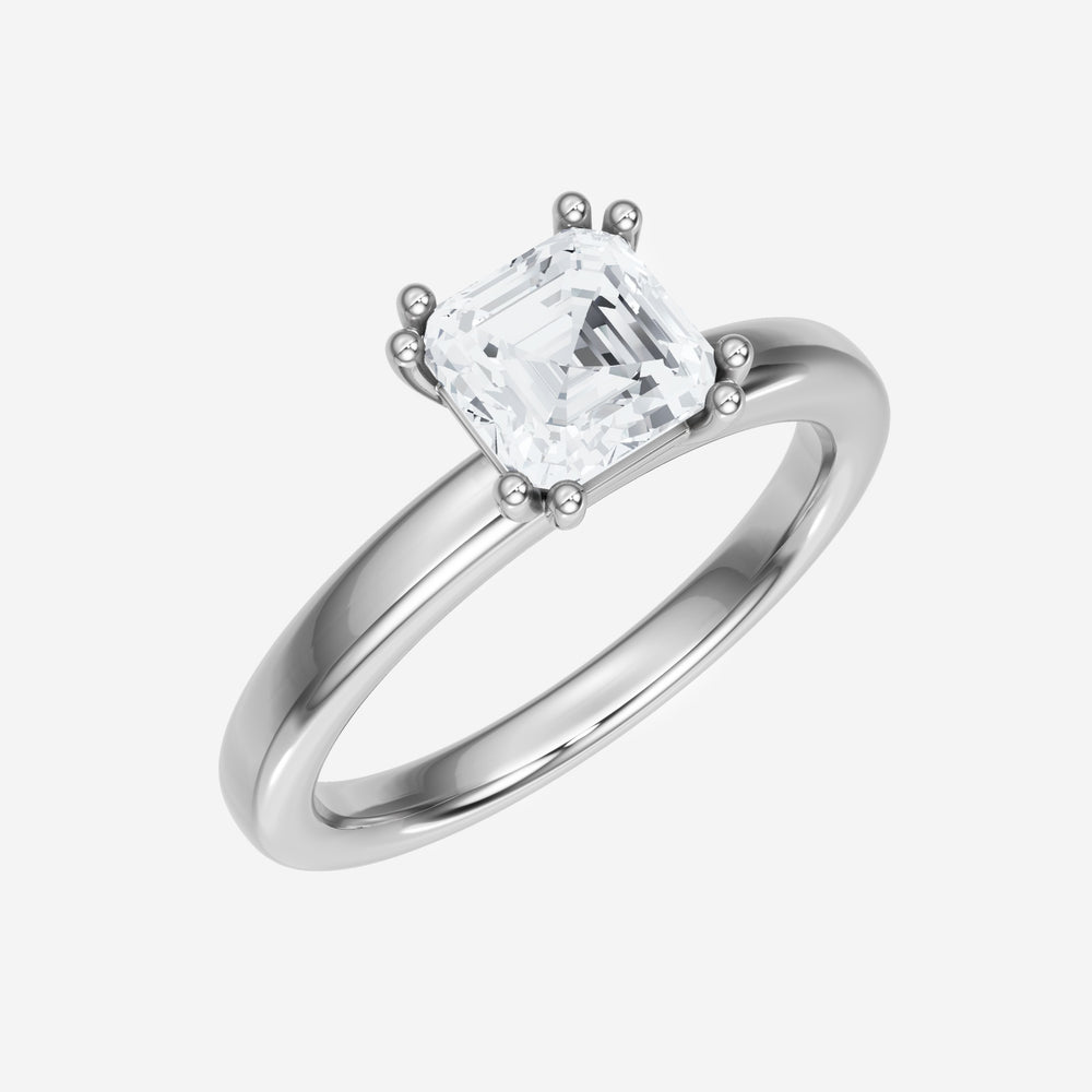You’ve designed a ring that reflects lasting elegance and grace! Crafted from 18K White Gold, this exquisite Asscher lab-grown diamond is the centerpiece of this unique design. This Basic Plain Shank with a 4 Prong Split Prong head showcases the brilliance of the Asscher diamond, creating a timeless look. Whether as a gift or a personal treasure, this ring will forever symbolize the most meaningful moments in life.