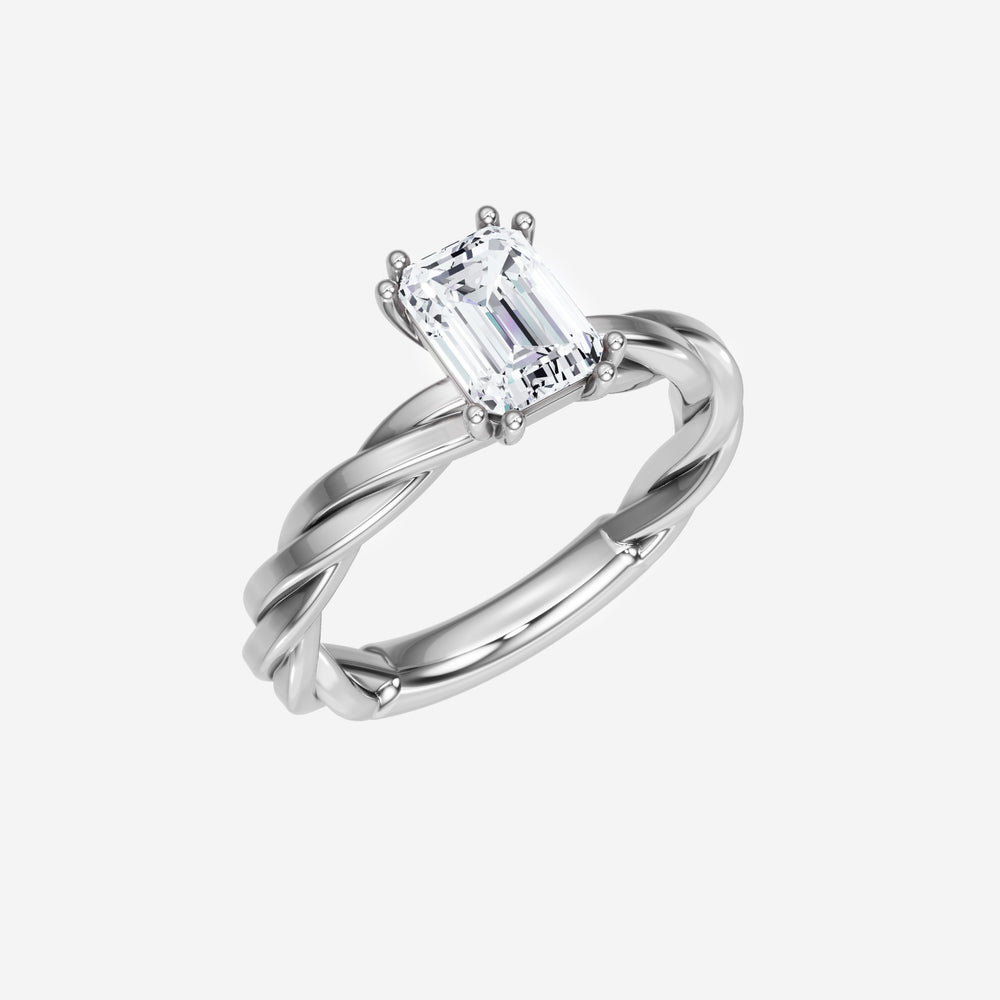 You’ve designed a ring that reflects lasting elegance and grace! Crafted from 18K White Gold, this exquisite Emerald lab-grown diamond is the centerpiece of this unique design. This Rope Plain Shank with a 4 Prong Split Prong head showcases the brilliance of the Emerald diamond, creating a timeless look. It's a piece of elegance and beauty, perfect for marking life's most beautiful occasions.