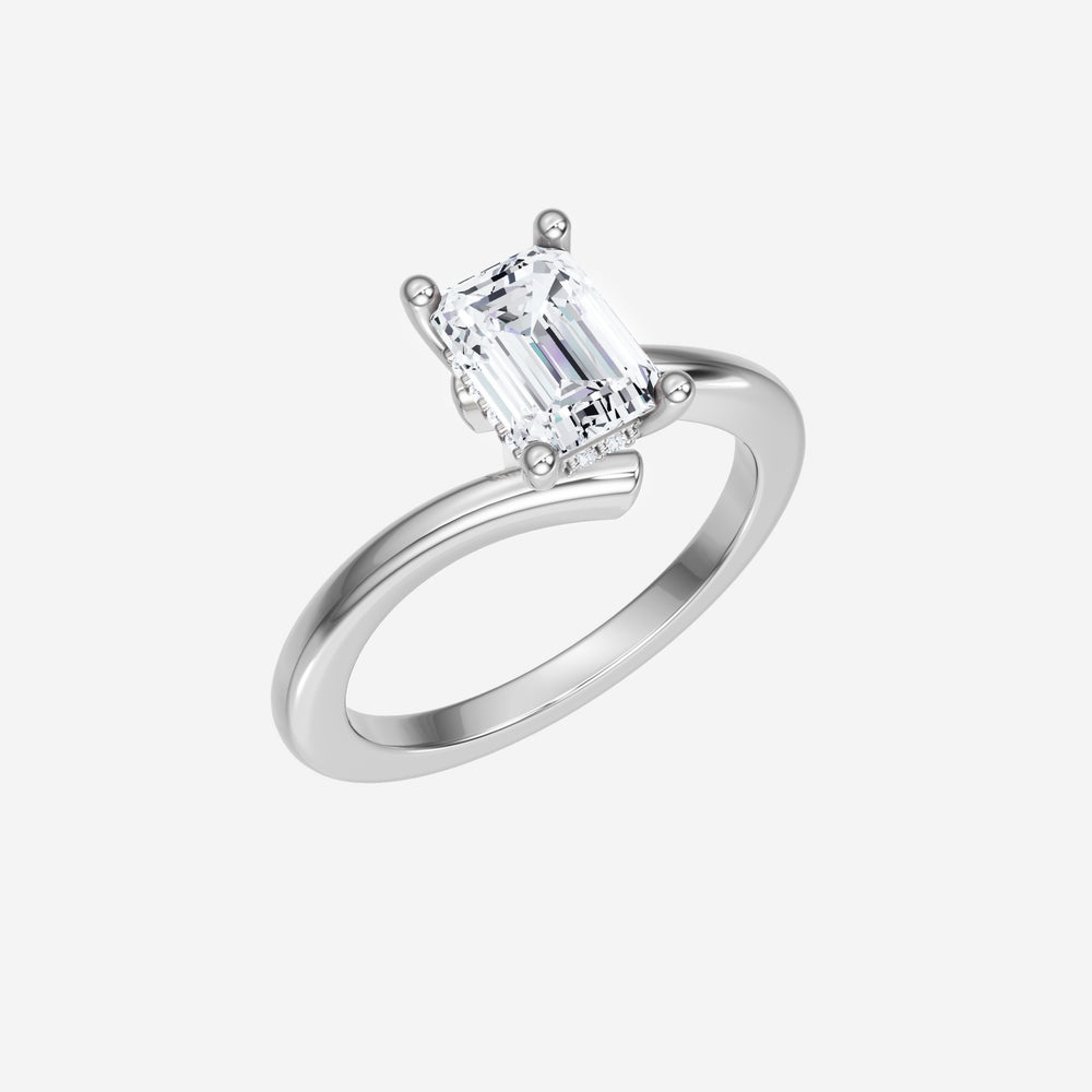 You’ve designed a ring that reflects lasting elegance and grace! Crafted from 18K White Gold, this exquisite Emerald lab-grown diamond is the centerpiece of this unique design. This Bypass Shank with a Hidden Halo head showcases the brilliance of the Emerald diamond, creating a timeless look. This elegant piece is the perfect symbol of love, strength, and timeless beauty.
