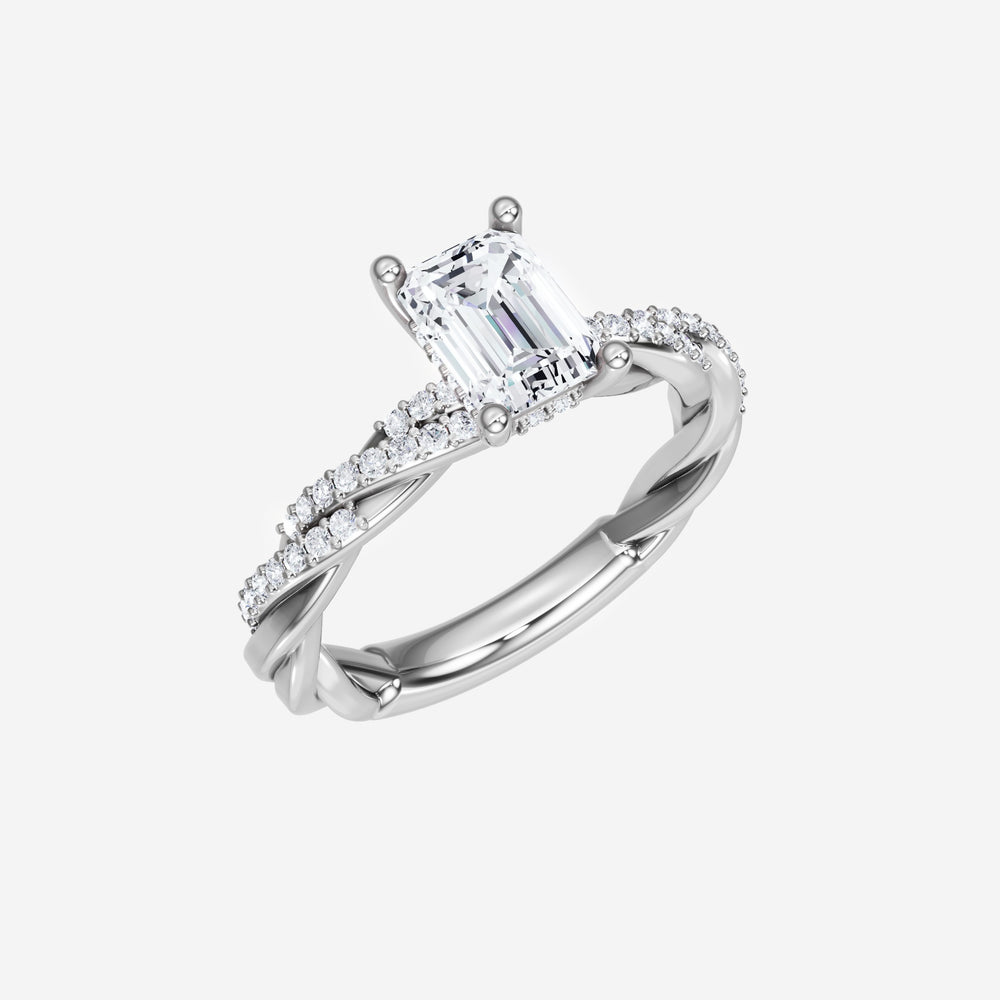 You’ve designed a ring that reflects lasting elegance and grace! Crafted from 18K White Gold, this exquisite Emerald lab-grown diamond is the centerpiece of this unique design. This Rope Diamond Shank with a Hidden Halo head showcases the brilliance of the Emerald diamond, creating a timeless look. With this ring, celebrate every moment of joy, success, and love.