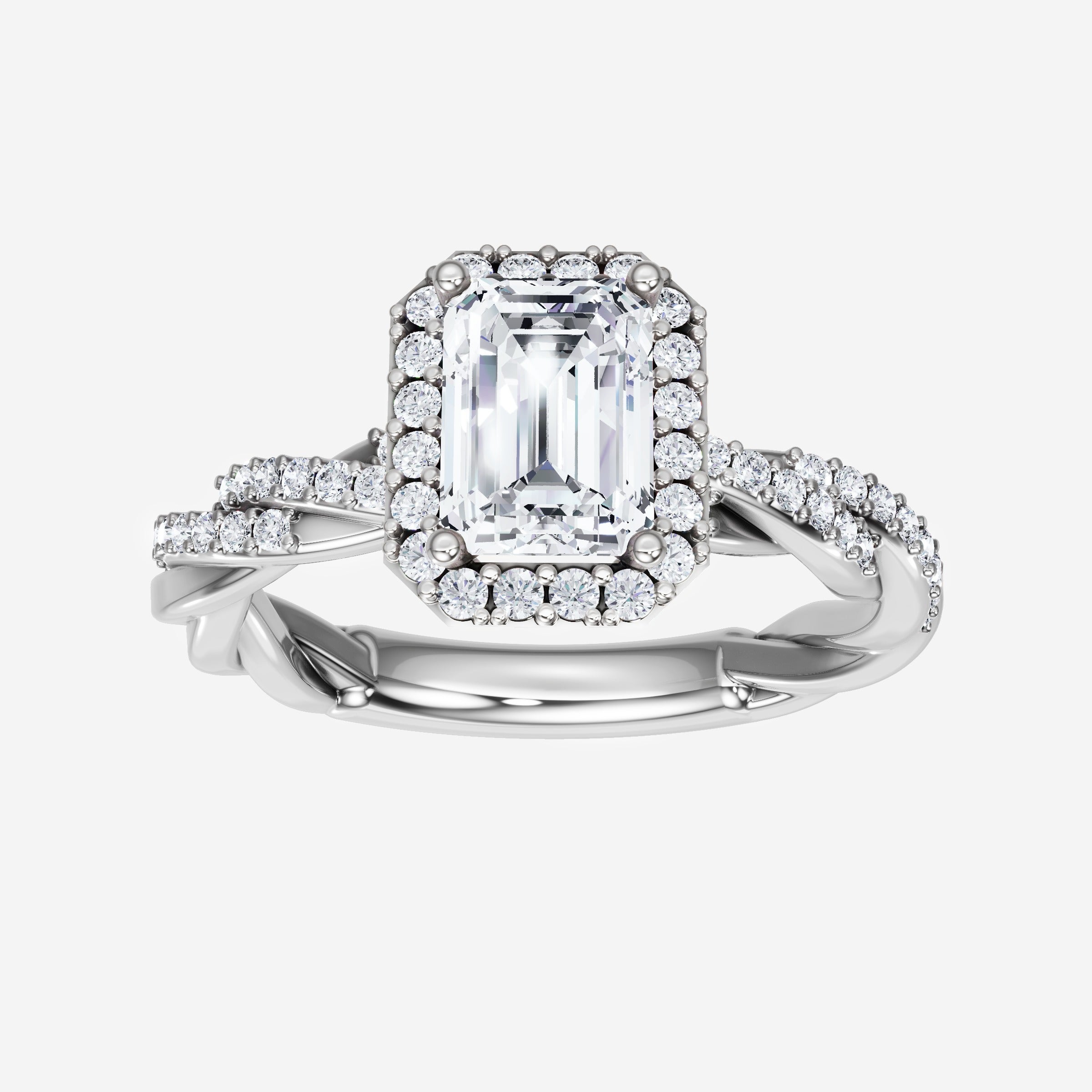 You’ve designed a ring that reflects lasting elegance and grace! Crafted from 18K White Gold, this exquisite Emerald lab-grown diamond is the centerpiece of this unique design. This Rope Diamond Shank with a Single Halo head showcases the brilliance of the Emerald diamond, creating a timeless look. Ideal for those who seek both beauty and meaning, this ring will stand as a testament to cherished memories.