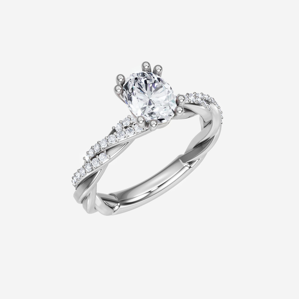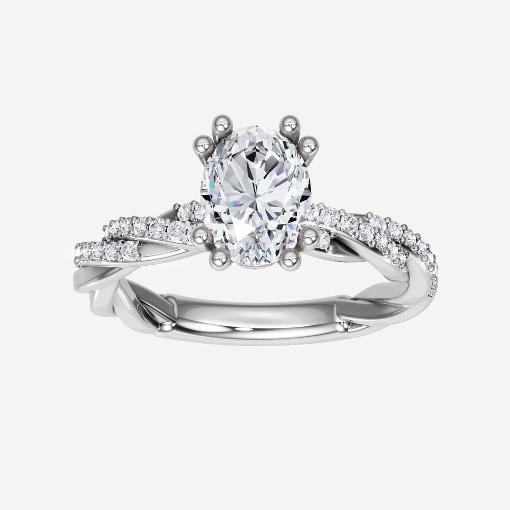 You’ve designed a ring that reflects lasting elegance and grace! Crafted from 18K White Gold, this exquisite Oval lab-grown diamond is the centerpiece of this unique design. This Rope Diamond Shank with a 4 Prong Split Prong head showcases the brilliance of the Oval diamond, creating a timeless look. This ring will become a cherished reminder of life's most treasured moments.