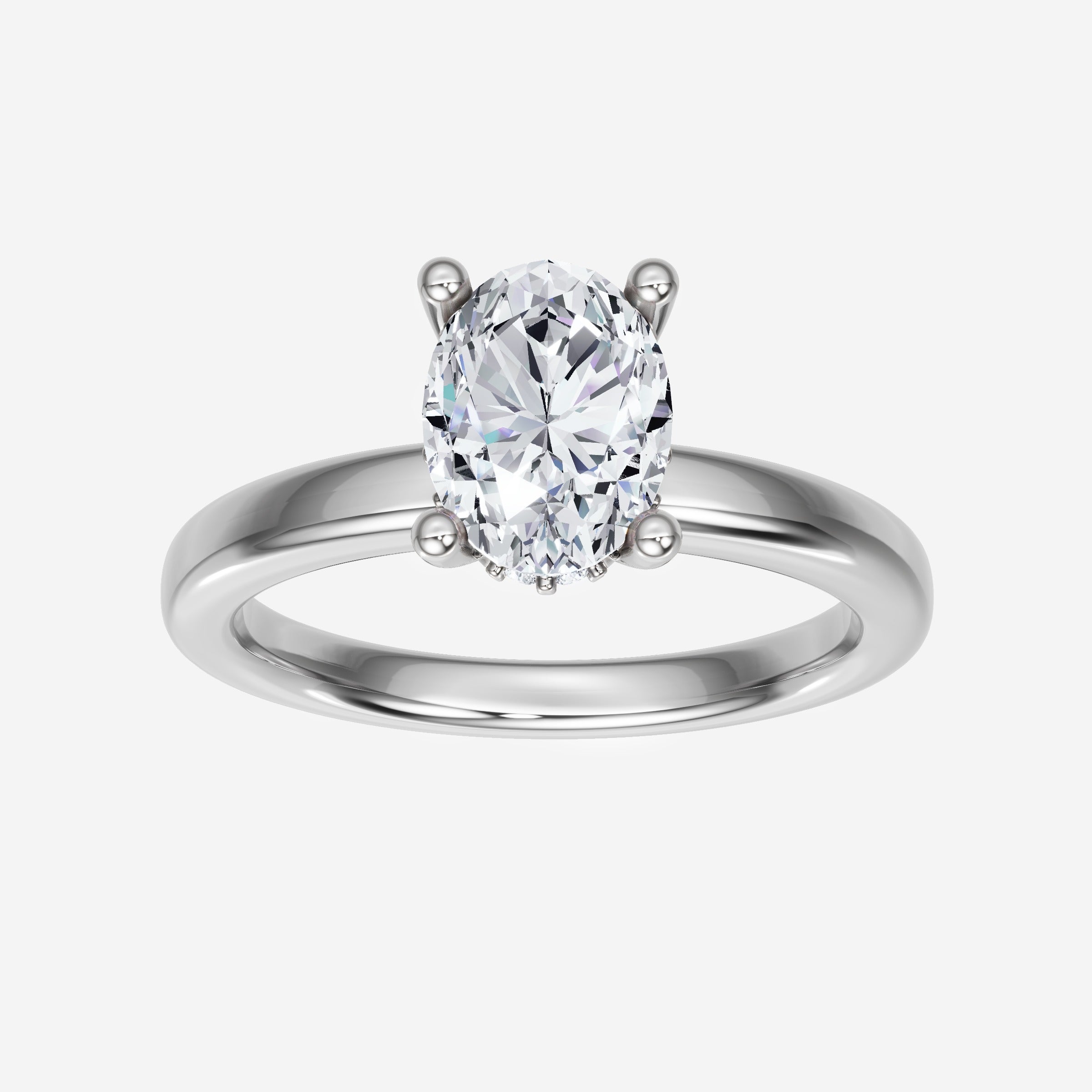 You’ve designed a ring that reflects lasting elegance and grace! Crafted from 18K White Gold, this exquisite Oval lab-grown diamond is the centerpiece of this unique design. This Basic Plain Shank with a Hidden Halo head showcases the brilliance of the Oval diamond, creating a timeless look. Ideal for those who seek both beauty and meaning, this ring will stand as a testament to cherished memories.