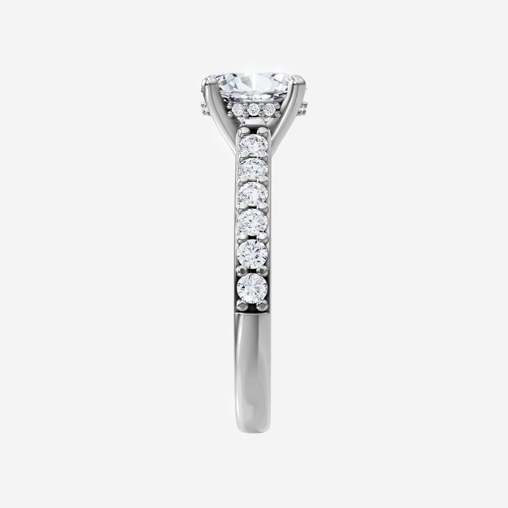 You’ve designed a ring that reflects lasting elegance and grace! Crafted from 18K White Gold, this exquisite Oval lab-grown diamond is the centerpiece of this unique design. This Cathedral Diamond Shank with a Hidden Halo head showcases the brilliance of the Oval diamond, creating a timeless look. This stunning ring makes the perfect symbol of everlasting love and devotion.