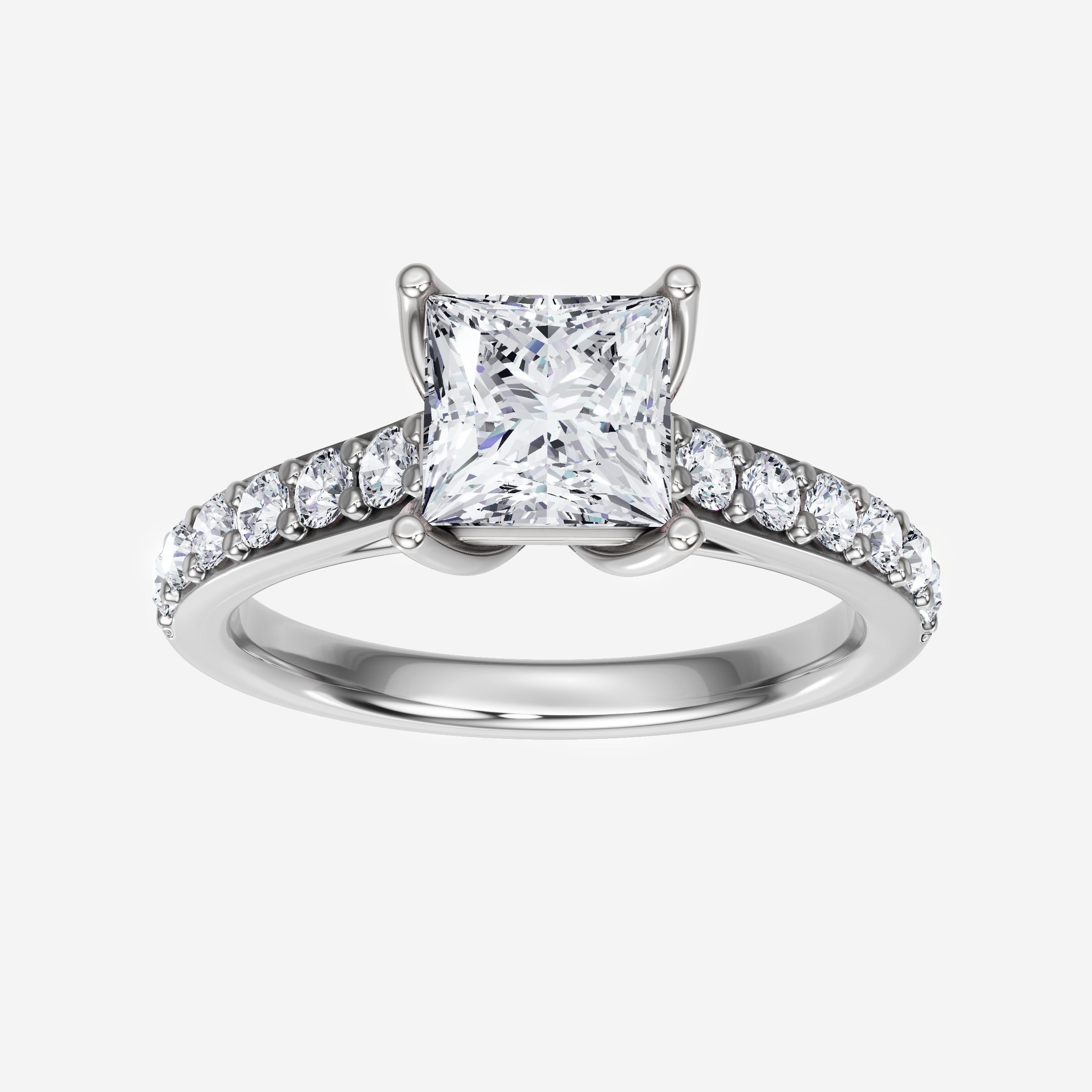You’ve designed a ring that reflects lasting elegance and grace! Crafted from 18K White Gold, this exquisite Princess lab-grown diamond is the centerpiece of this unique design. This Cathedral Diamond Shank with a 4 Prong Flower Head head showcases the brilliance of the Princess diamond, creating a timeless look. Ideal for those who seek both beauty and meaning, this ring will stand as a testament to cherished memories.