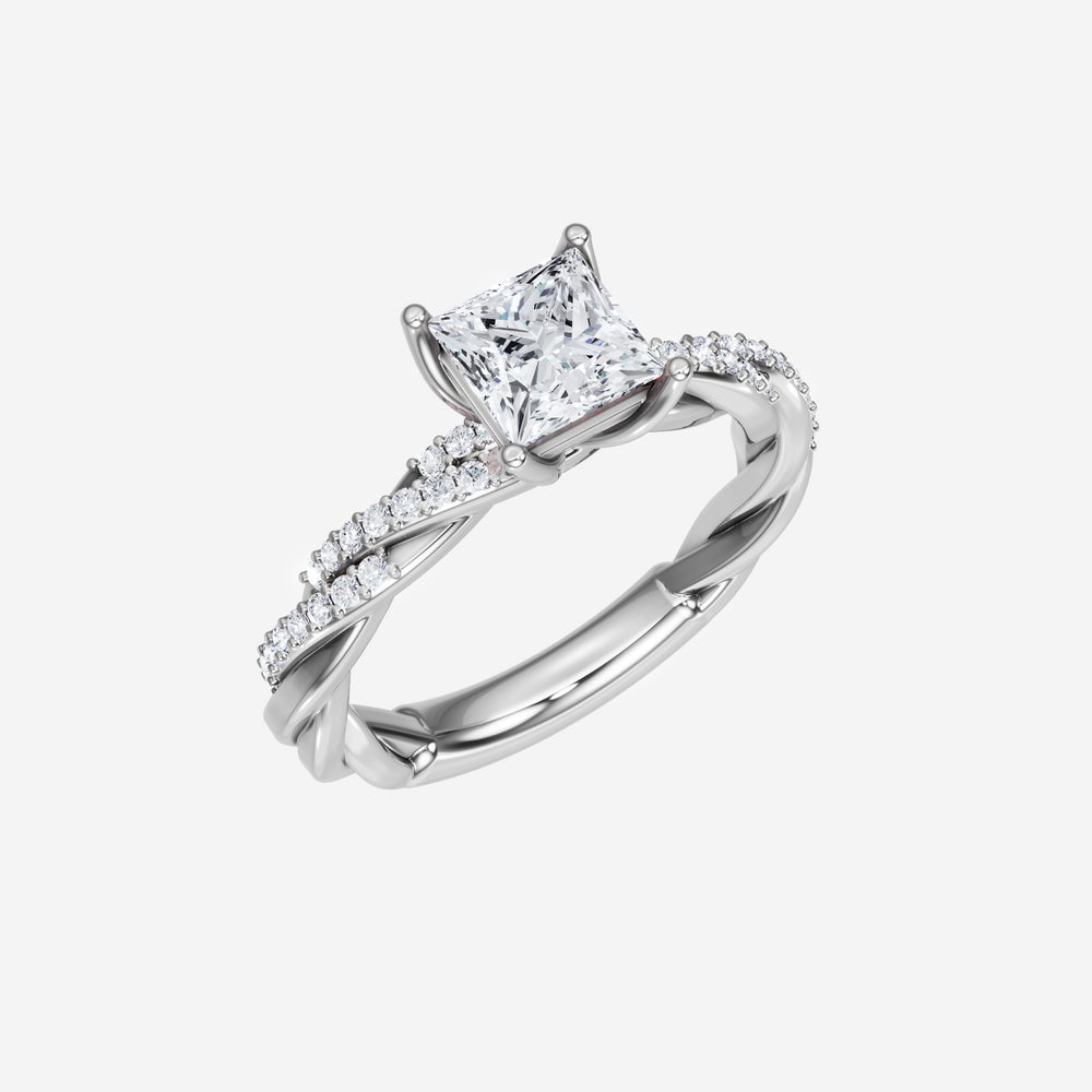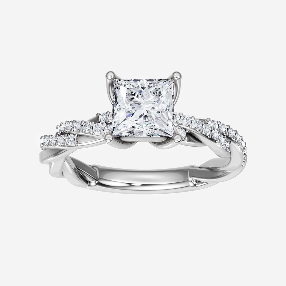 You’ve designed a ring that reflects lasting elegance and grace! Crafted from 18K White Gold, this exquisite Princess lab-grown diamond is the centerpiece of this unique design. This Rope Diamond Shank with a 4 Prong Flower Head head showcases the brilliance of the Princess diamond, creating a timeless look. This ring will become a cherished reminder of life's most treasured moments.