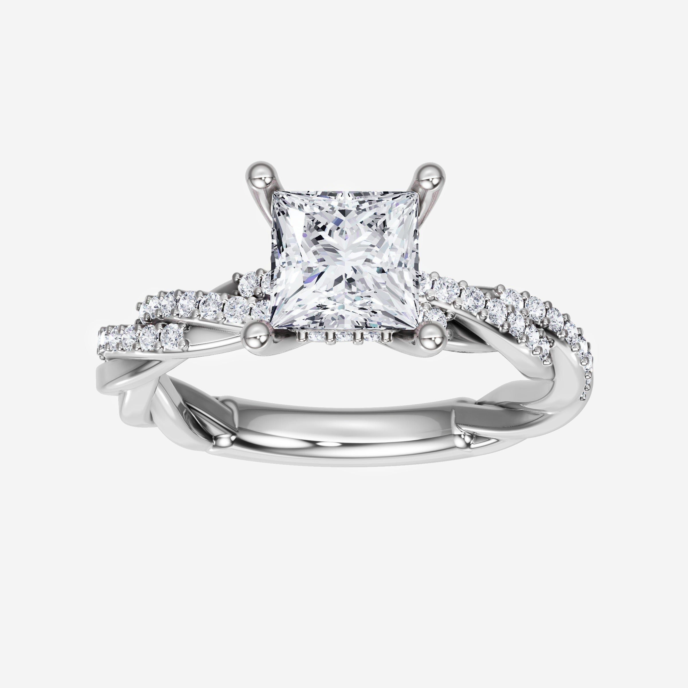 You’ve designed a ring that reflects lasting elegance and grace! Crafted from 18K White Gold, this exquisite Princess lab-grown diamond is the centerpiece of this unique design. This Rope Diamond Shank with a Hidden Halo head showcases the brilliance of the Princess diamond, creating a timeless look. This elegant piece is the perfect symbol of love, strength, and timeless beauty.