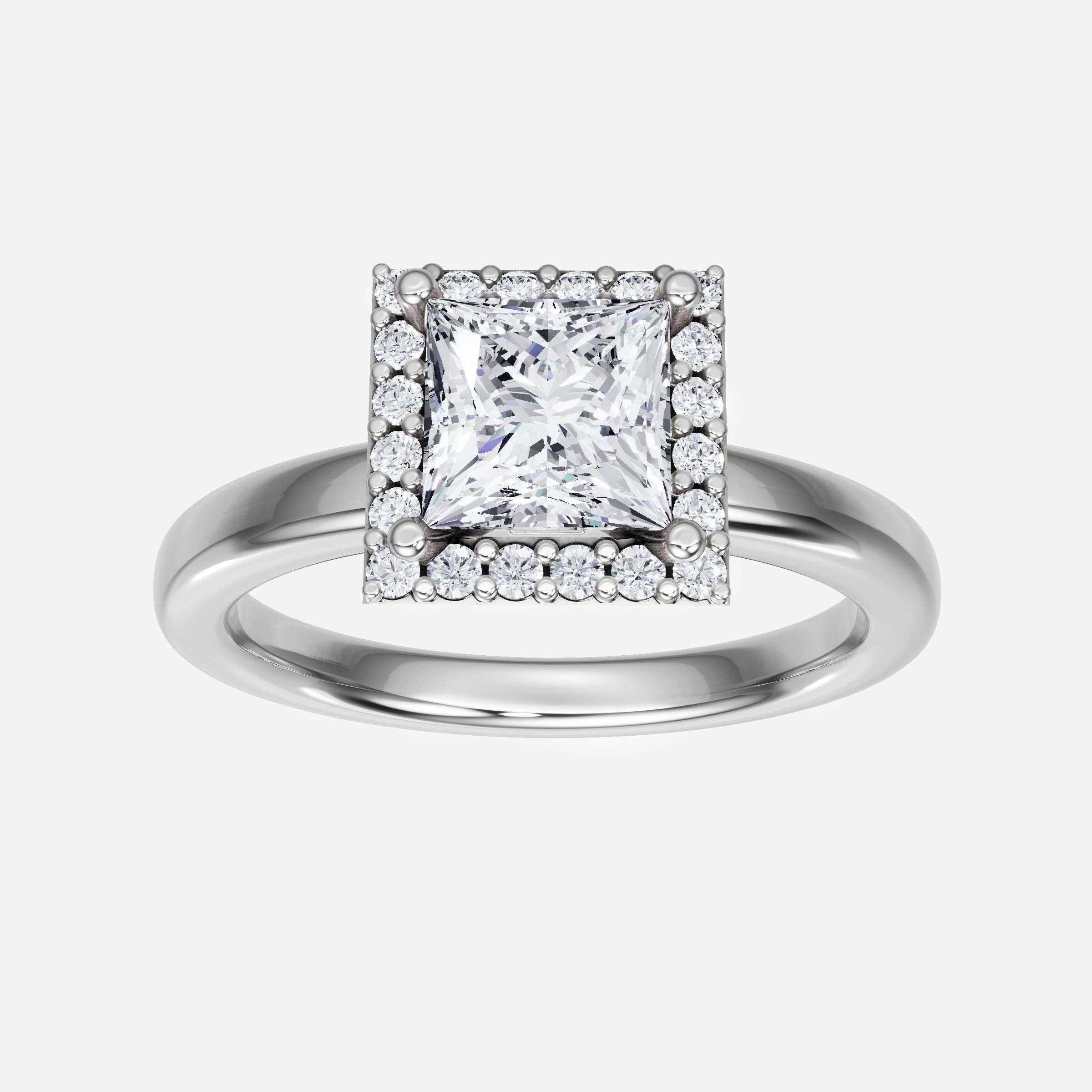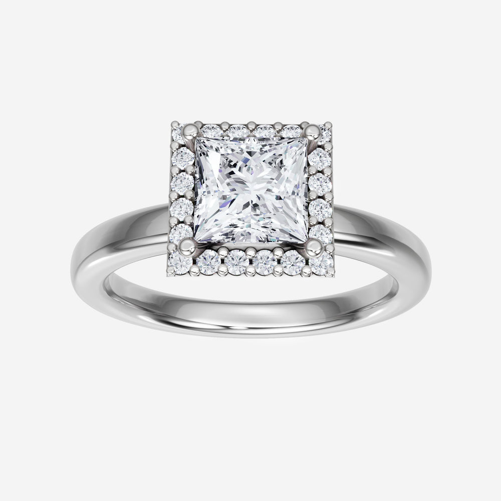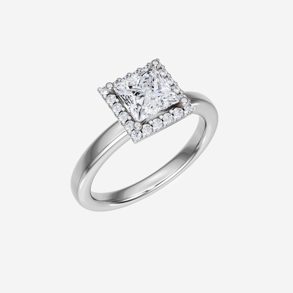 You’ve designed a ring that reflects lasting elegance and grace! Crafted from 18K White Gold, this exquisite Princess lab-grown diamond is the centerpiece of this unique design. This Basic Plain Shank with a Single Halo head showcases the brilliance of the Princess diamond, creating a timeless look. It's a piece of elegance and beauty, perfect for marking life's most beautiful occasions.