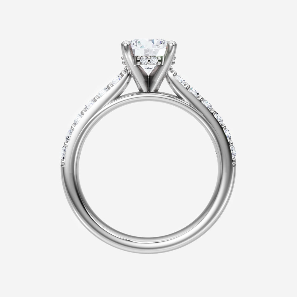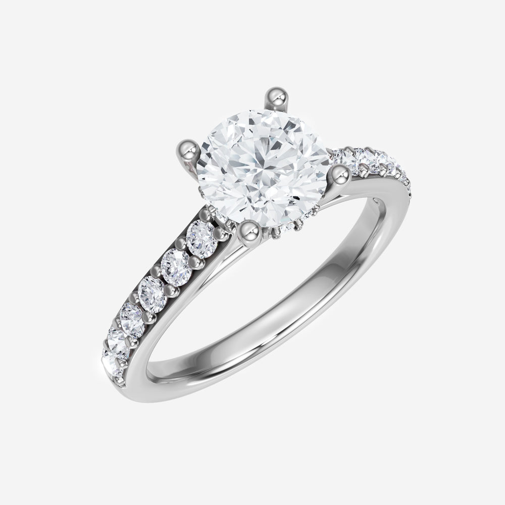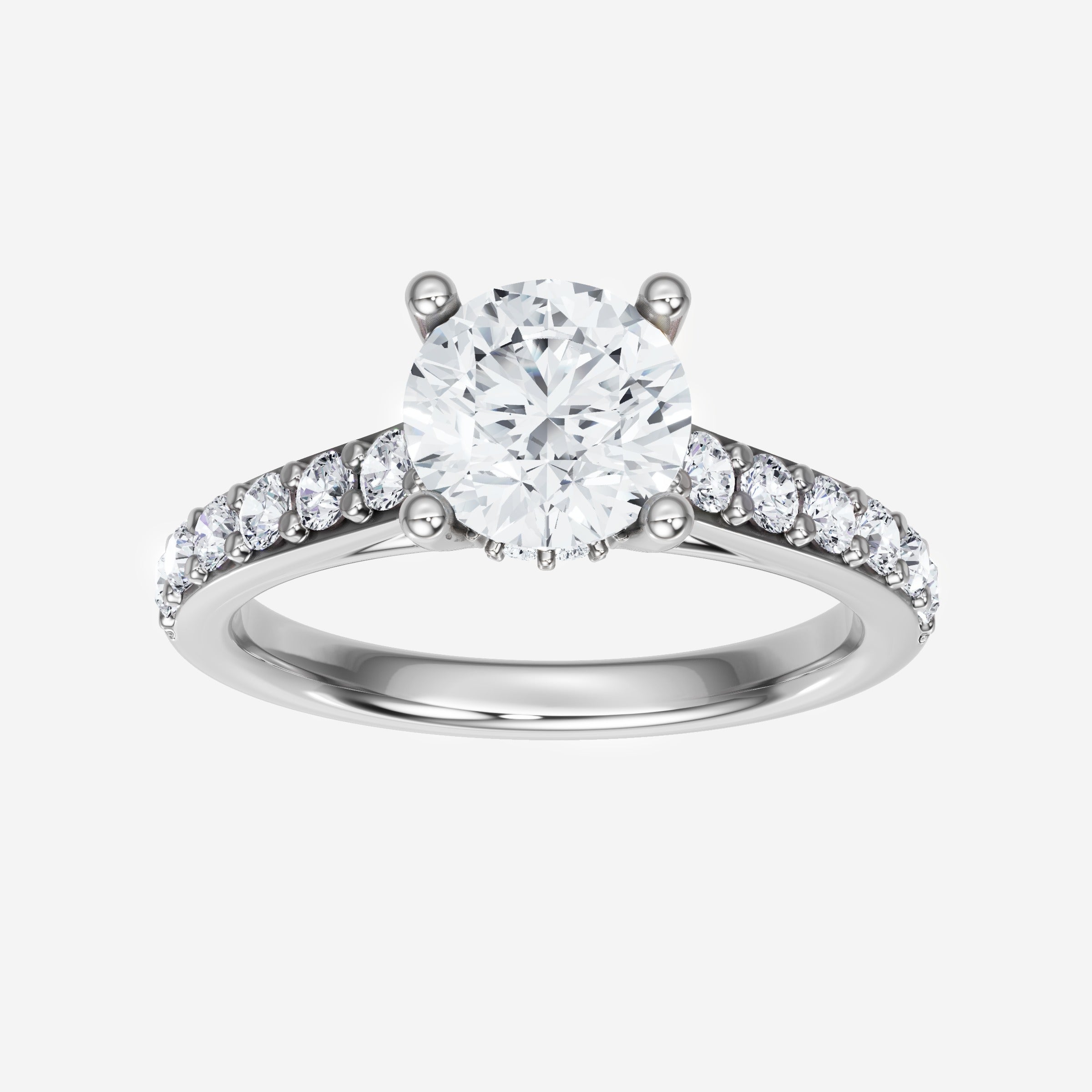 You’ve designed a ring that reflects lasting elegance and grace! Crafted from 18K White Gold, this exquisite Round lab-grown diamond is the centerpiece of this unique design. This Cathedral Diamond Shank with a Hidden Halo head showcases the brilliance of the Round diamond, creating a timeless look. Ideal for those who seek both beauty and meaning, this ring will stand as a testament to cherished memories.
