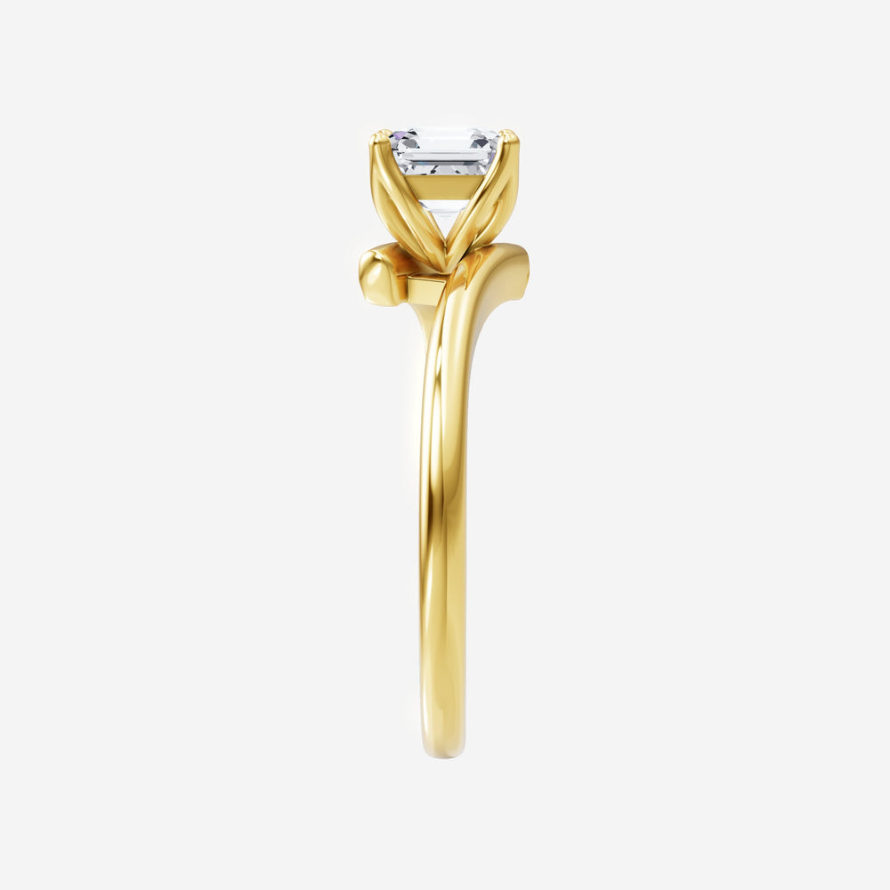 You’ve designed a ring that reflects lasting elegance and grace! Crafted from 18K Yellow Gold, this exquisite Asscher lab-grown diamond is the centerpiece of this unique design. This Bypass Shank with a 4 Prong Flower Head head showcases the brilliance of the Asscher diamond, creating a timeless look. This stunning ring makes the perfect symbol of everlasting love and devotion.