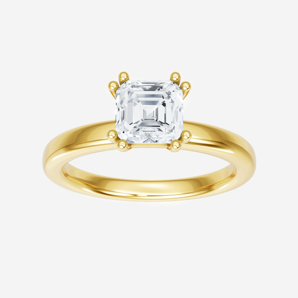 You’ve designed a ring that reflects lasting elegance and grace! Crafted from 18K Yellow Gold, this exquisite Asscher lab-grown diamond is the centerpiece of this unique design. This Basic Plain Shank with a 4 Prong Split Prong head showcases the brilliance of the Asscher diamond, creating a timeless look. This ring will become a cherished reminder of life's most treasured moments.