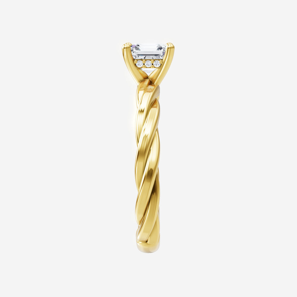 You’ve designed a ring that reflects lasting elegance and grace! Crafted from 18K Yellow Gold, this exquisite Asscher lab-grown diamond is the centerpiece of this unique design. This Rope Plain Shank with a Hidden Halo head showcases the brilliance of the Asscher diamond, creating a timeless look. It's a piece of elegance and beauty, perfect for marking life's most beautiful occasions.