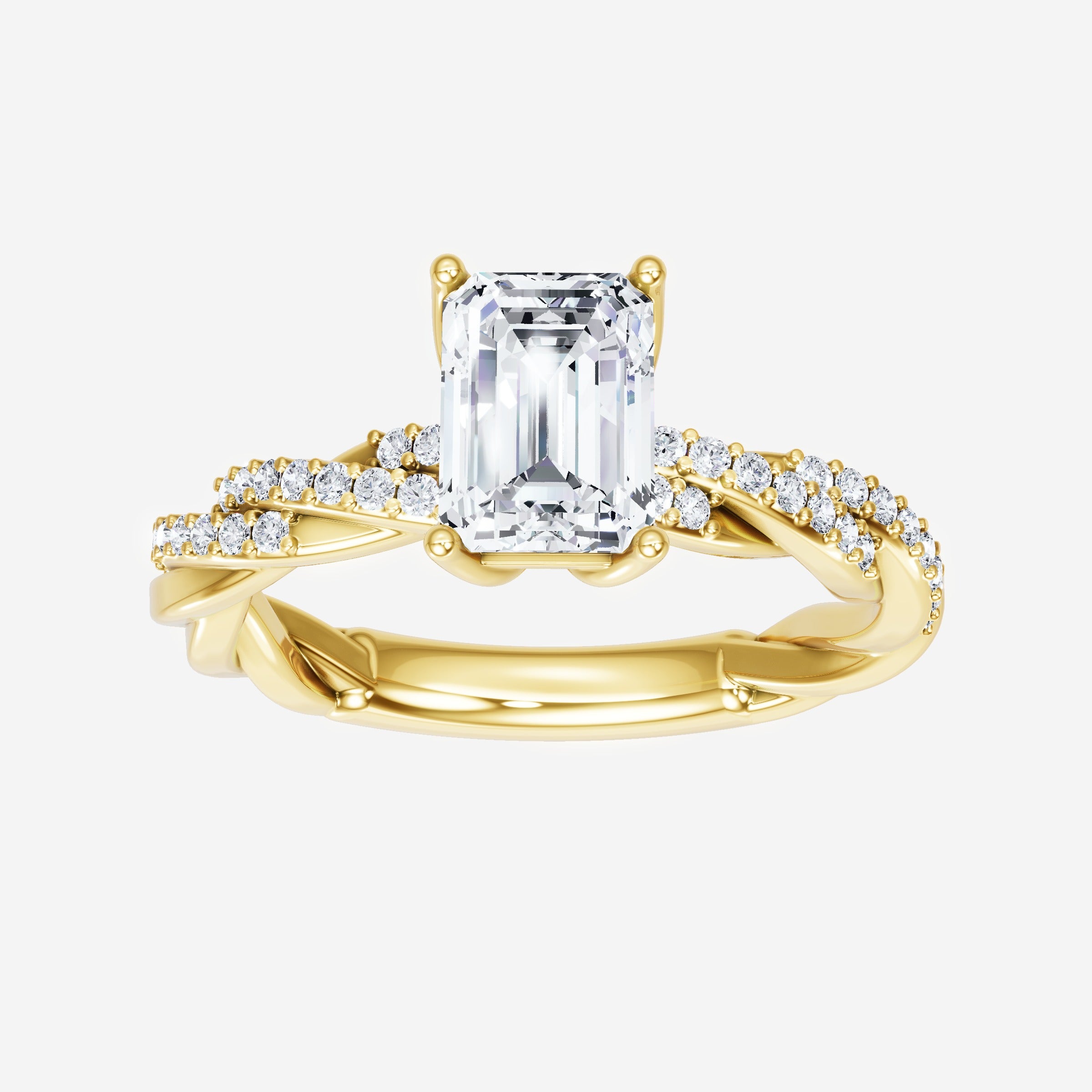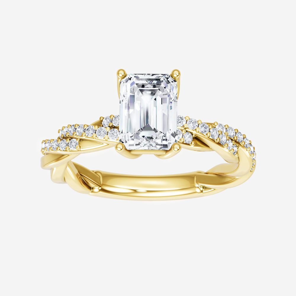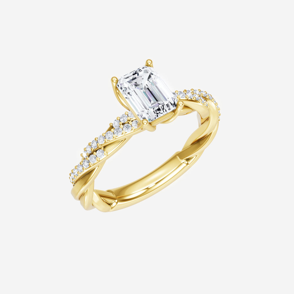 You’ve designed a ring that reflects lasting elegance and grace! Crafted from 18K Yellow Gold, this exquisite Emerald lab-grown diamond is the centerpiece of this unique design. This Rope Diamond Shank with a 4 Prong Flower Head head showcases the brilliance of the Emerald diamond, creating a timeless look. It's a piece of elegance and beauty, perfect for marking life's most beautiful occasions.