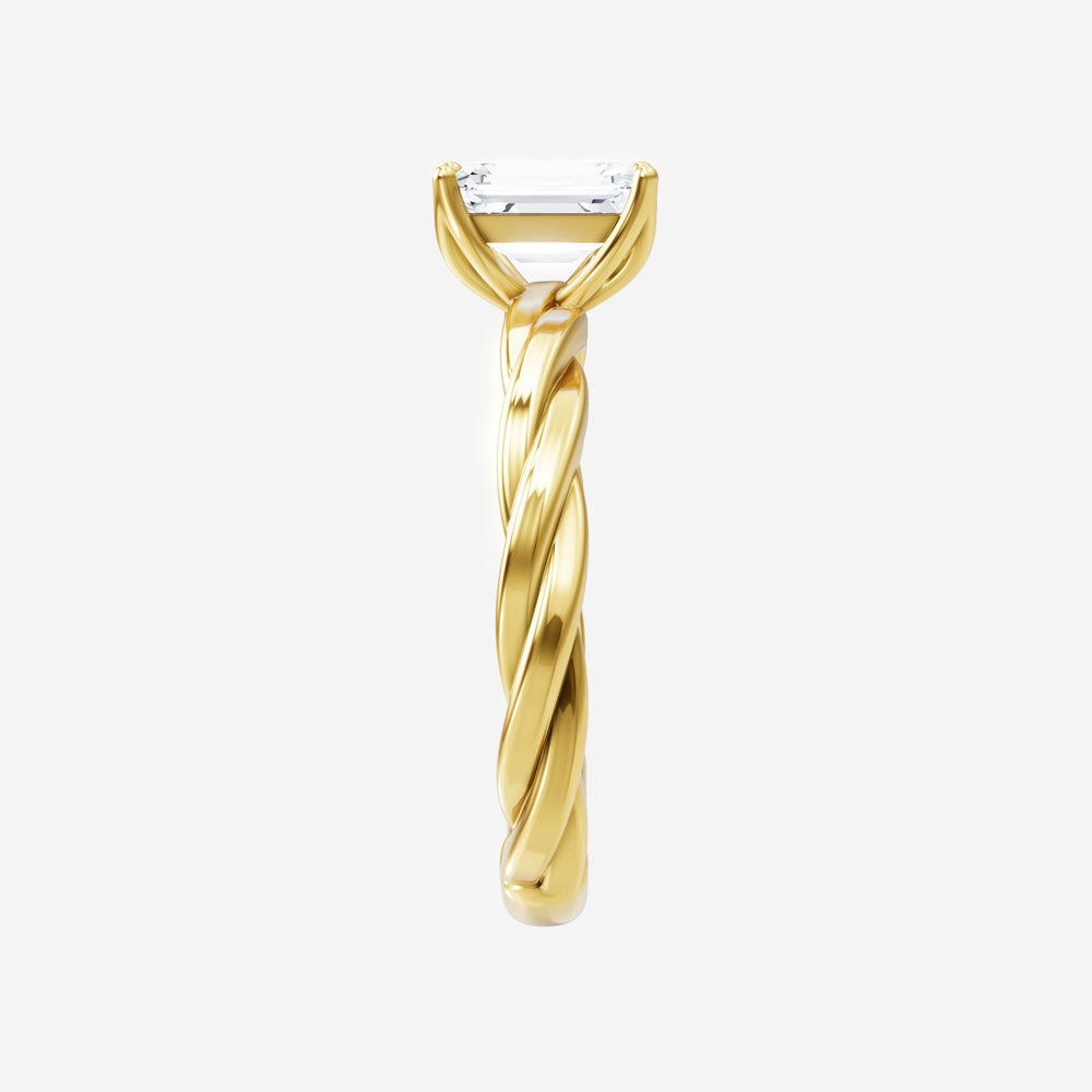 You’ve designed a ring that reflects lasting elegance and grace! Crafted from 18K Yellow Gold, this exquisite Emerald lab-grown diamond is the centerpiece of this unique design. This Rope Plain Shank with a 4 Prong Flower Head head showcases the brilliance of the Emerald diamond, creating a timeless look. This elegant piece is the perfect symbol of love, strength, and timeless beauty.