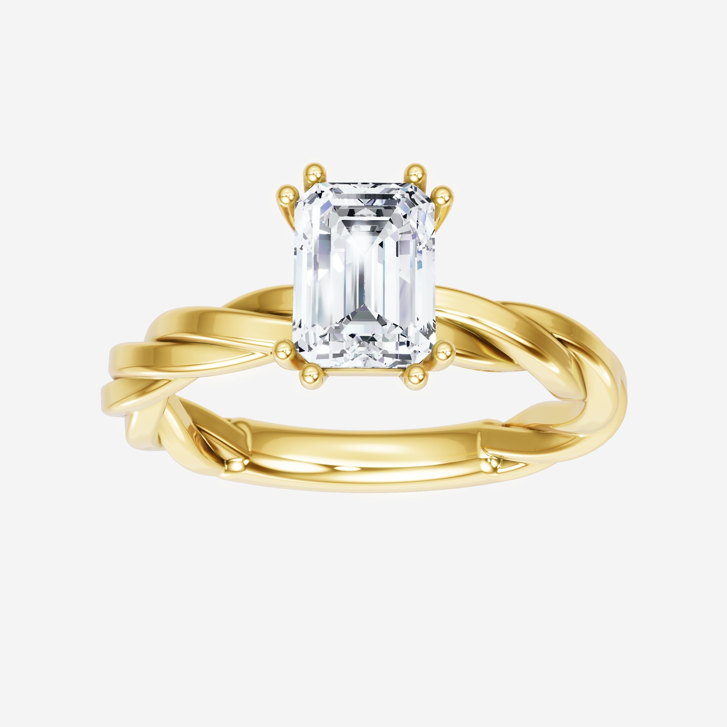 You’ve designed a ring that reflects lasting elegance and grace! Crafted from 18K Yellow Gold, this exquisite Emerald lab-grown diamond is the centerpiece of this unique design. This Rope Plain Shank with a 4 Prong Split Prong head showcases the brilliance of the Emerald diamond, creating a timeless look. With this ring, celebrate every moment of joy, success, and love.