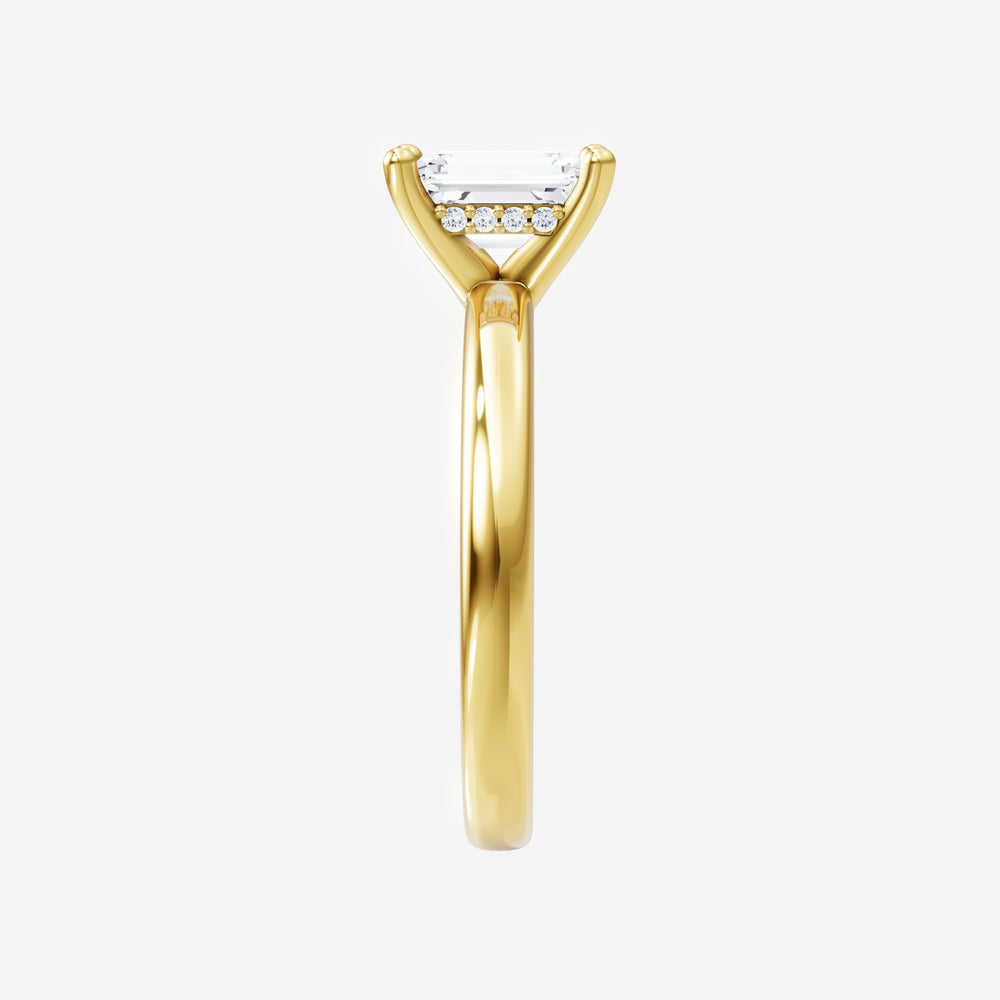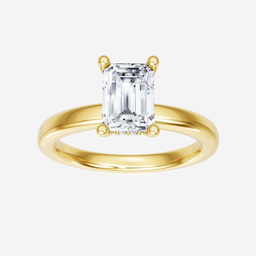 You’ve designed a ring that reflects lasting elegance and grace! Crafted from 18K Yellow Gold, this exquisite Emerald lab-grown diamond is the centerpiece of this unique design. This Basic Plain Shank with a Hidden Halo head showcases the brilliance of the Emerald diamond, creating a timeless look. It's a piece of elegance and beauty, perfect for marking life's most beautiful occasions.