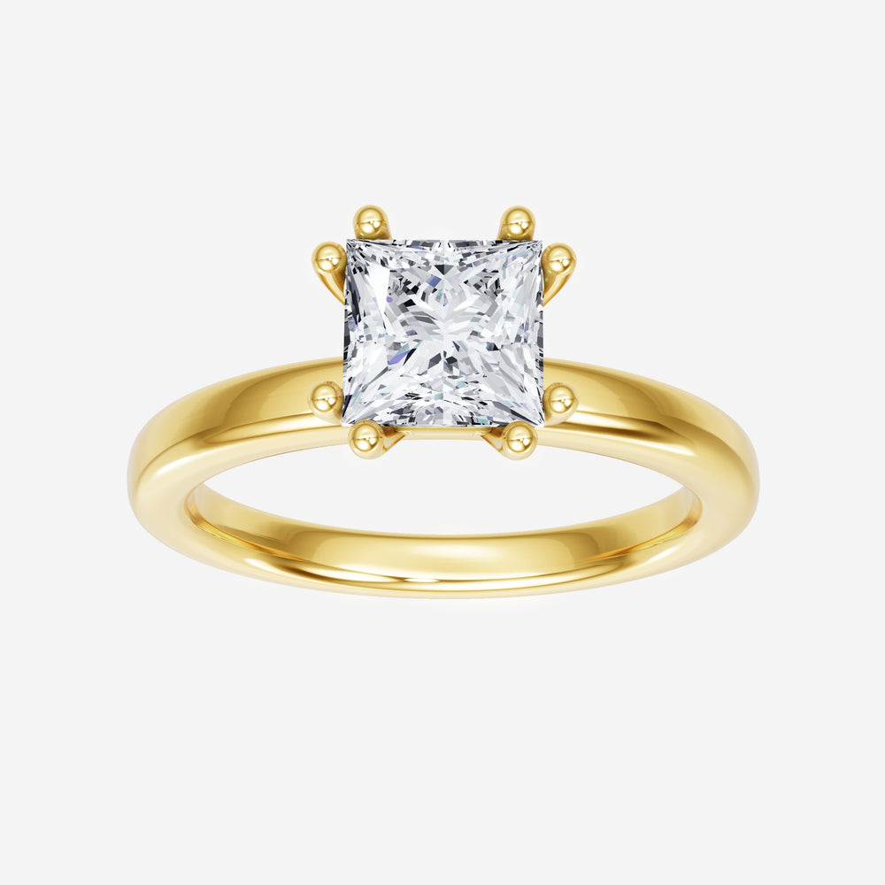 You’ve designed a ring that reflects lasting elegance and grace! Crafted from 18K Yellow Gold, this exquisite Princess lab-grown diamond is the centerpiece of this unique design. This Basic Plain Shank with a 4 Prong Split Prong head showcases the brilliance of the Princess diamond, creating a timeless look. This elegant piece is the perfect symbol of love, strength, and timeless beauty.