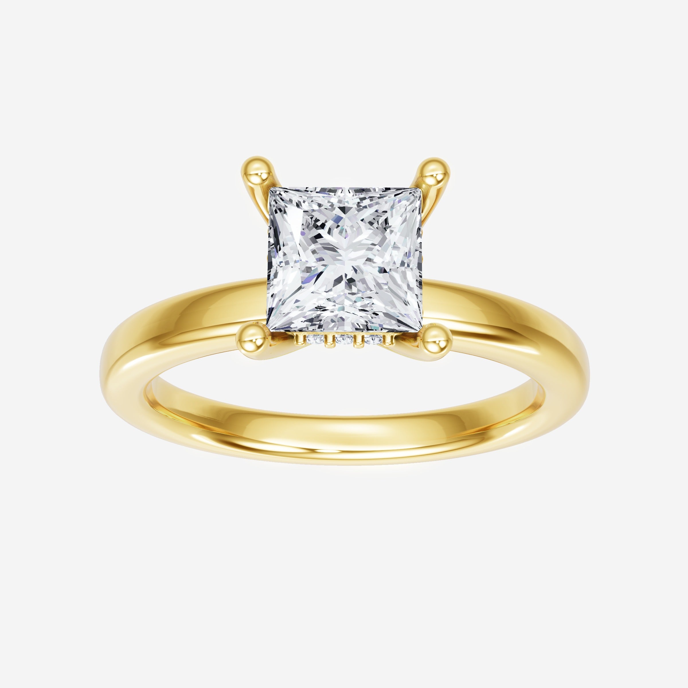 You’ve designed a ring that reflects lasting elegance and grace! Crafted from 18K Yellow Gold, this exquisite Princess lab-grown diamond is the centerpiece of this unique design. This Basic Plain Shank with a Hidden Halo head showcases the brilliance of the Princess diamond, creating a timeless look. Whether as a gift or a personal treasure, this ring will forever symbolize the most meaningful moments in life.