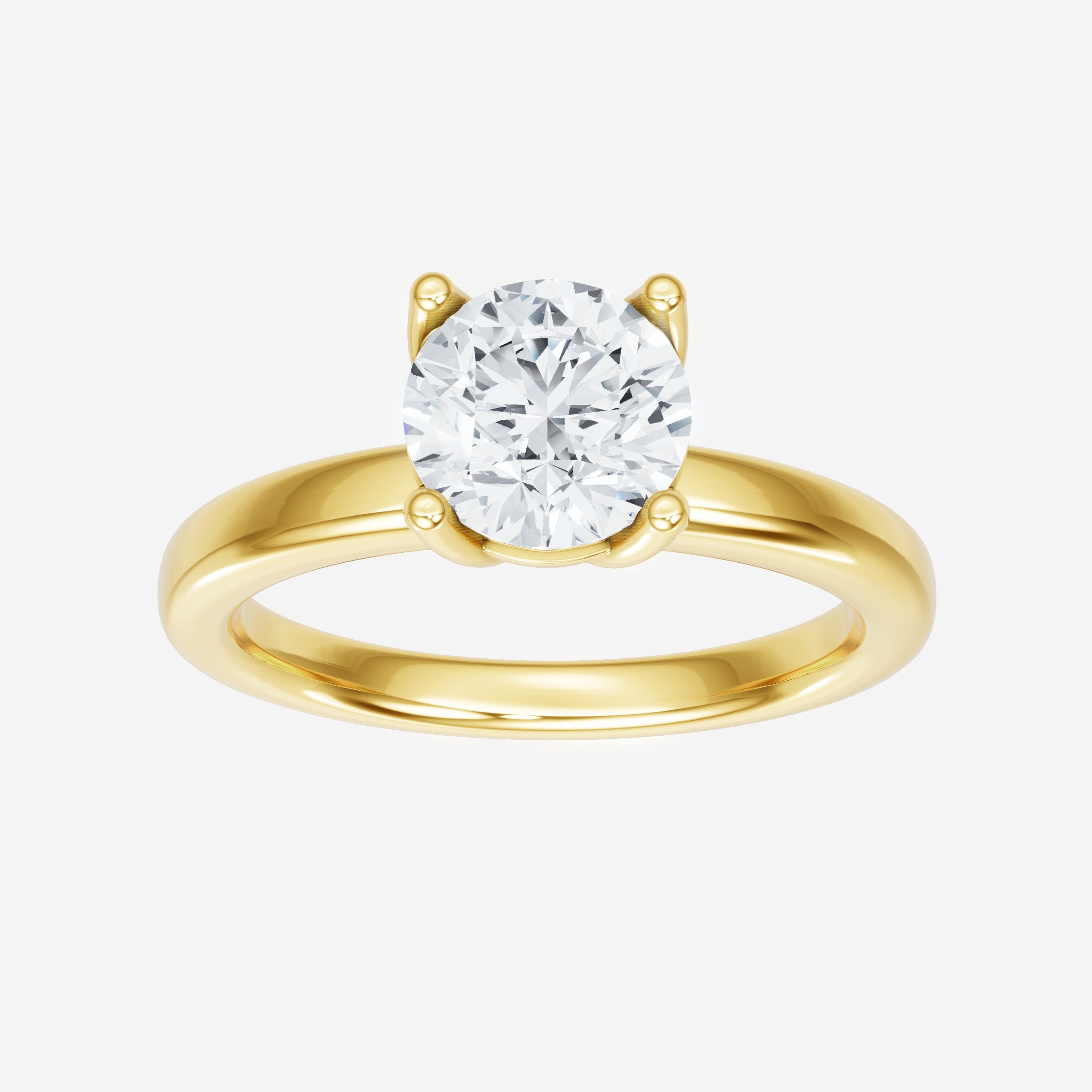 You’ve designed a ring that reflects lasting elegance and grace! Crafted from 18K Yellow Gold, this exquisite Round lab-grown diamond is the centerpiece of this unique design. This Basic Plain Shank with a 4 Prong Flower Head head showcases the brilliance of the Round diamond, creating a timeless look. It's a piece of elegance and beauty, perfect for marking life's most beautiful occasions.