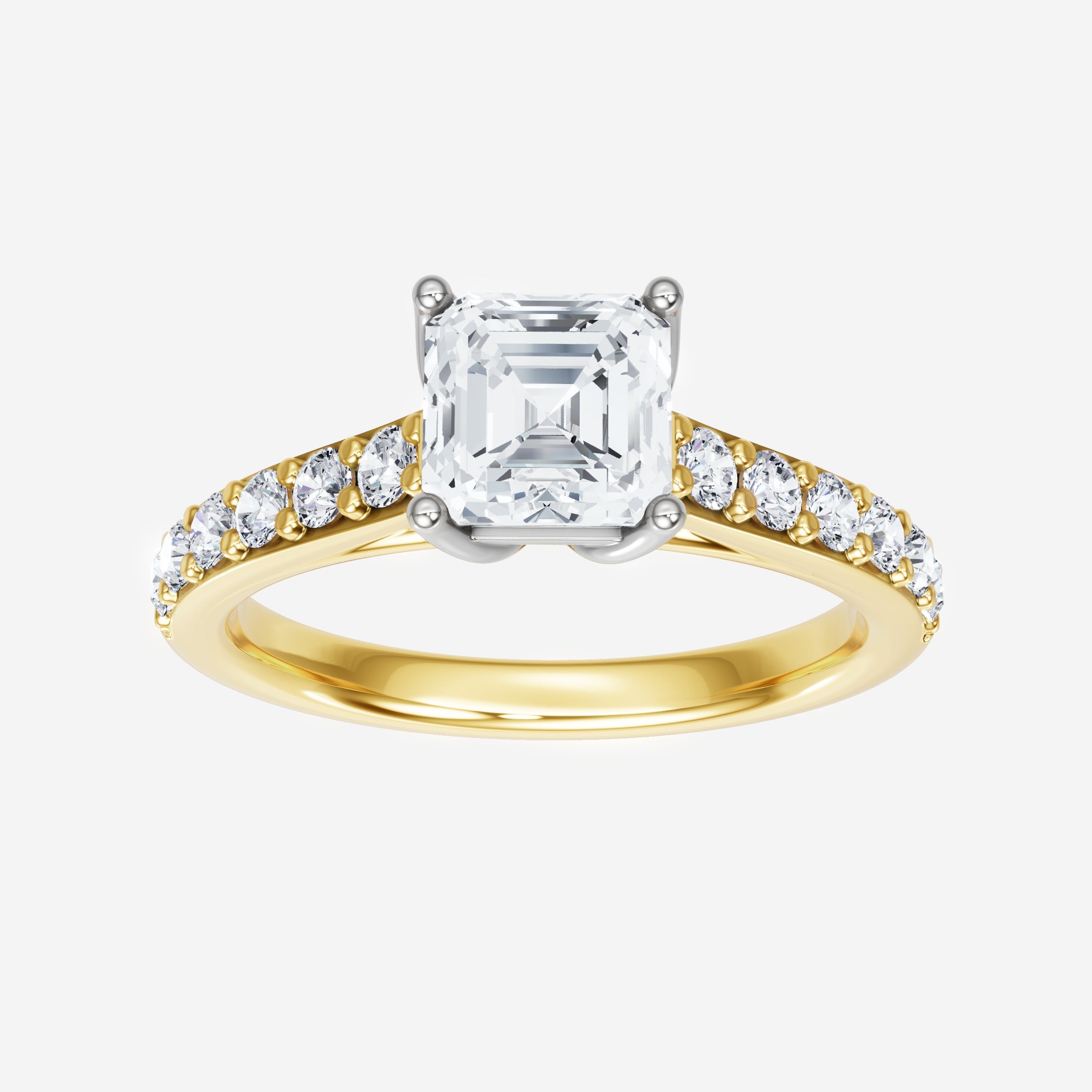 You’ve designed a ring that reflects lasting elegance and grace! Crafted from 18k Yellow White Dual Tone, this exquisite Asscher lab-grown diamond is the centerpiece of this unique design. This Cathedral Diamond Shank with a 4 Prong Flower Head head showcases the brilliance of the Asscher diamond, creating a timeless look. Whether as a gift or a personal treasure, this ring will forever symbolize the most meaningful moments in life.