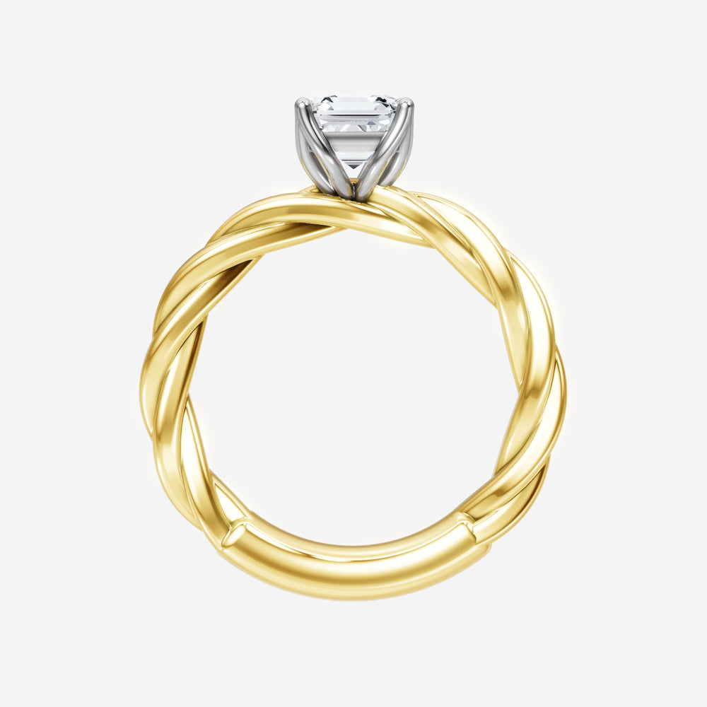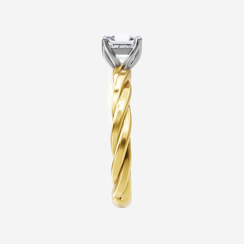 You’ve designed a ring that reflects lasting elegance and grace! Crafted from 18k Yellow White Dual Tone, this exquisite Asscher lab-grown diamond is the centerpiece of this unique design. This Rope Plain Shank with a 4 Prong Flower Head head showcases the brilliance of the Asscher diamond, creating a timeless look. This elegant piece is the perfect symbol of love, strength, and timeless beauty.