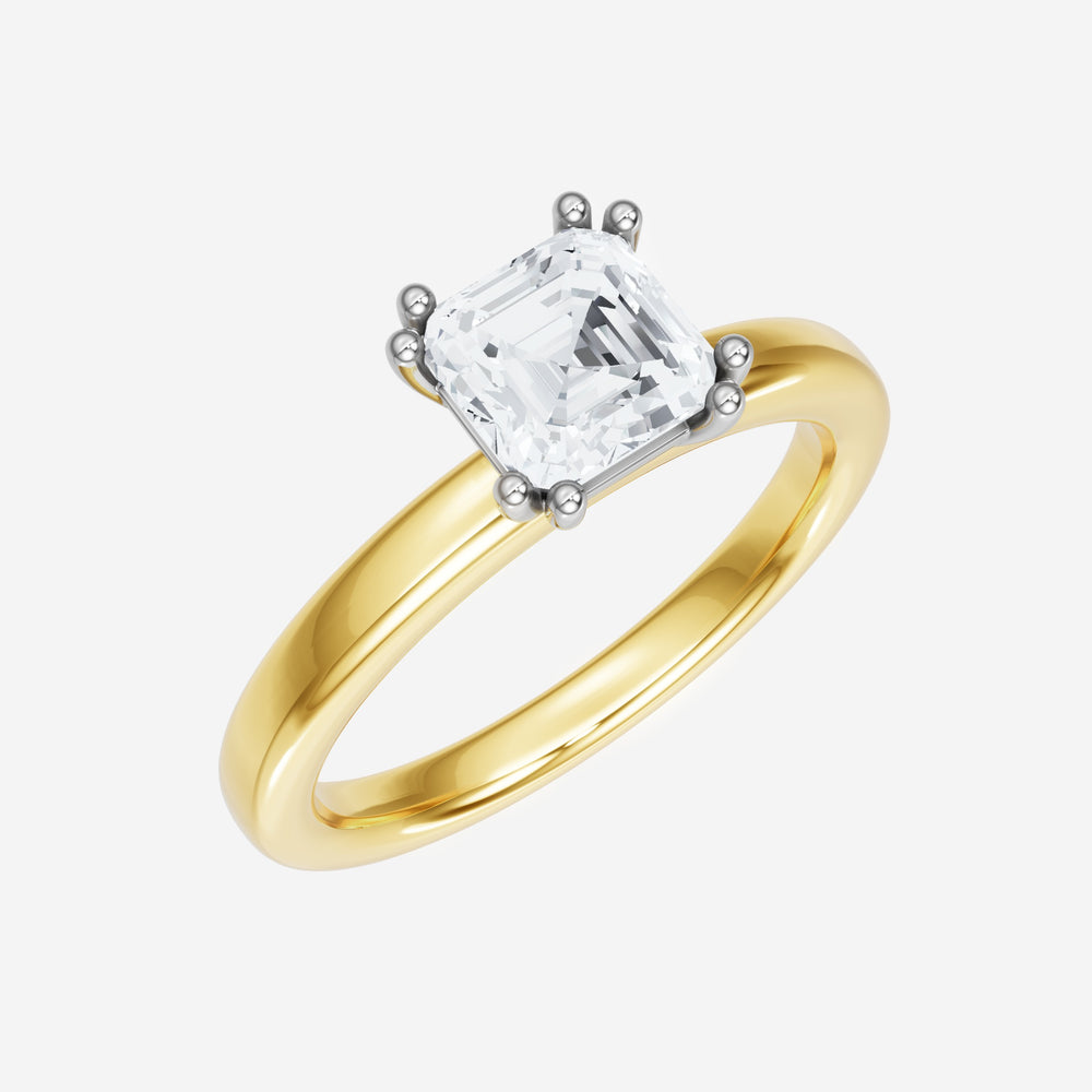 You’ve designed a ring that reflects lasting elegance and grace! Crafted from 18k Yellow White Dual Tone, this exquisite Asscher lab-grown diamond is the centerpiece of this unique design. This Basic Plain Shank with a 4 Prong Split Prong head showcases the brilliance of the Asscher diamond, creating a timeless look. Whether as a gift or a personal treasure, this ring will forever symbolize the most meaningful moments in life.