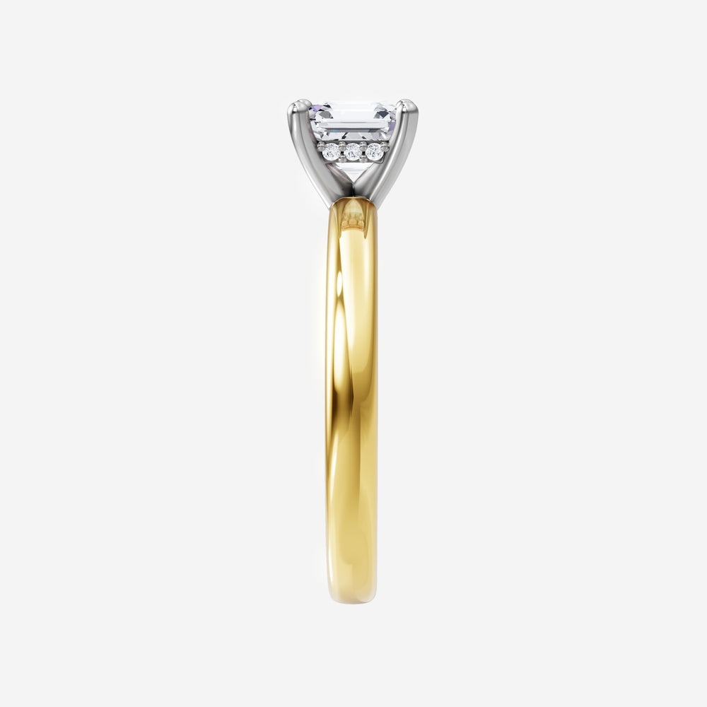 You’ve designed a ring that reflects lasting elegance and grace! Crafted from 18k Yellow White Dual Tone, this exquisite Asscher lab-grown diamond is the centerpiece of this unique design. This Basic Plain Shank with a Hidden Halo head showcases the brilliance of the Asscher diamond, creating a timeless look. It's a piece of elegance and beauty, perfect for marking life's most beautiful occasions.