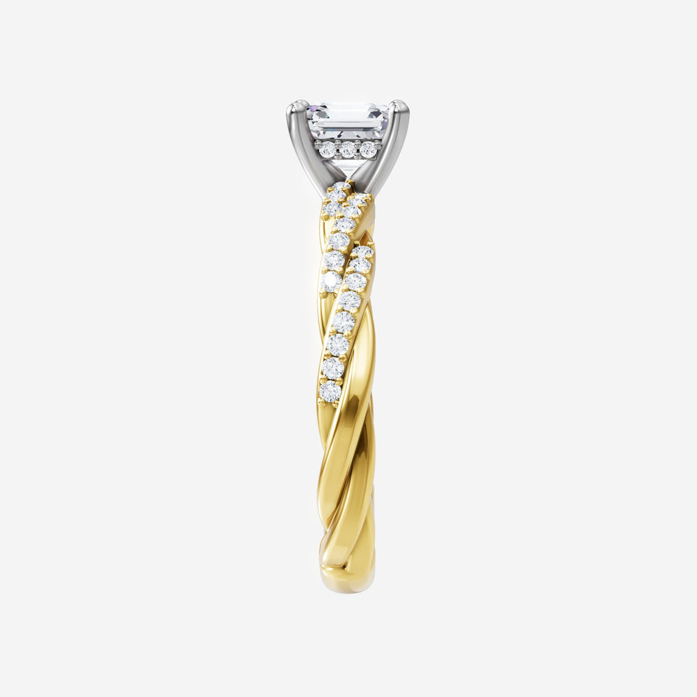 You’ve designed a ring that reflects lasting elegance and grace! Crafted from 18k Yellow White Dual Tone, this exquisite Asscher lab-grown diamond is the centerpiece of this unique design. This Rope Diamond Shank with a Hidden Halo head showcases the brilliance of the Asscher diamond, creating a timeless look. Whether as a gift or a personal treasure, this ring will forever symbolize the most meaningful moments in life.