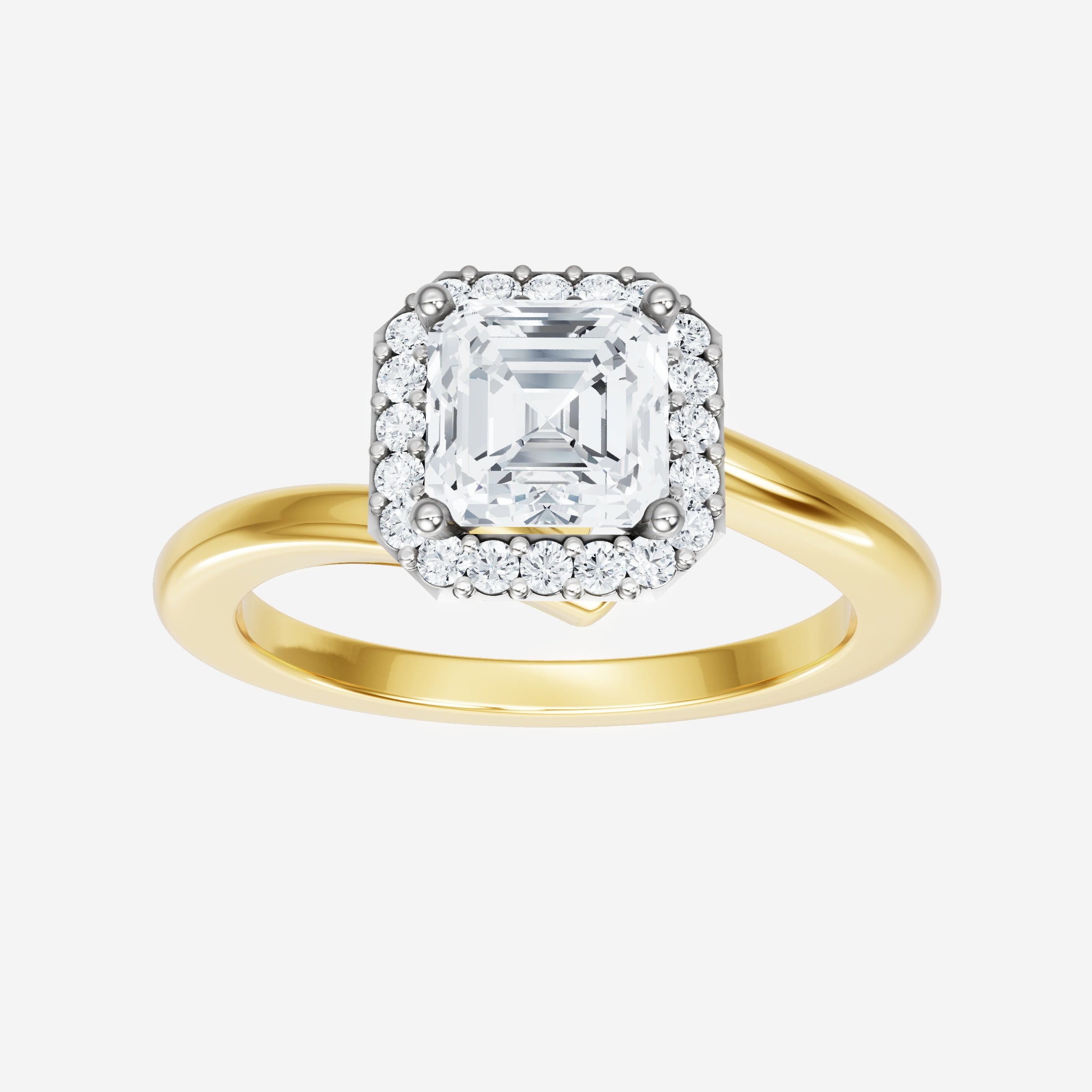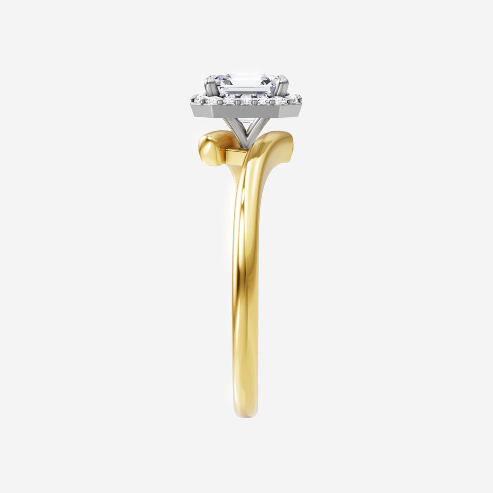 You’ve designed a ring that reflects lasting elegance and grace! Crafted from 18k Yellow White Dual Tone, this exquisite Asscher lab-grown diamond is the centerpiece of this unique design. This Bypass Shank with a Single Halo head showcases the brilliance of the Asscher diamond, creating a timeless look. It's a piece of elegance and beauty, perfect for marking life's most beautiful occasions.