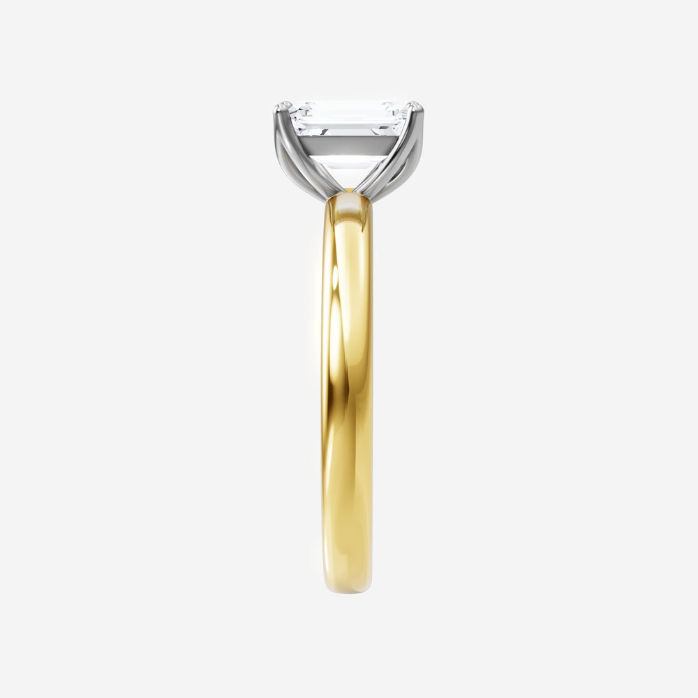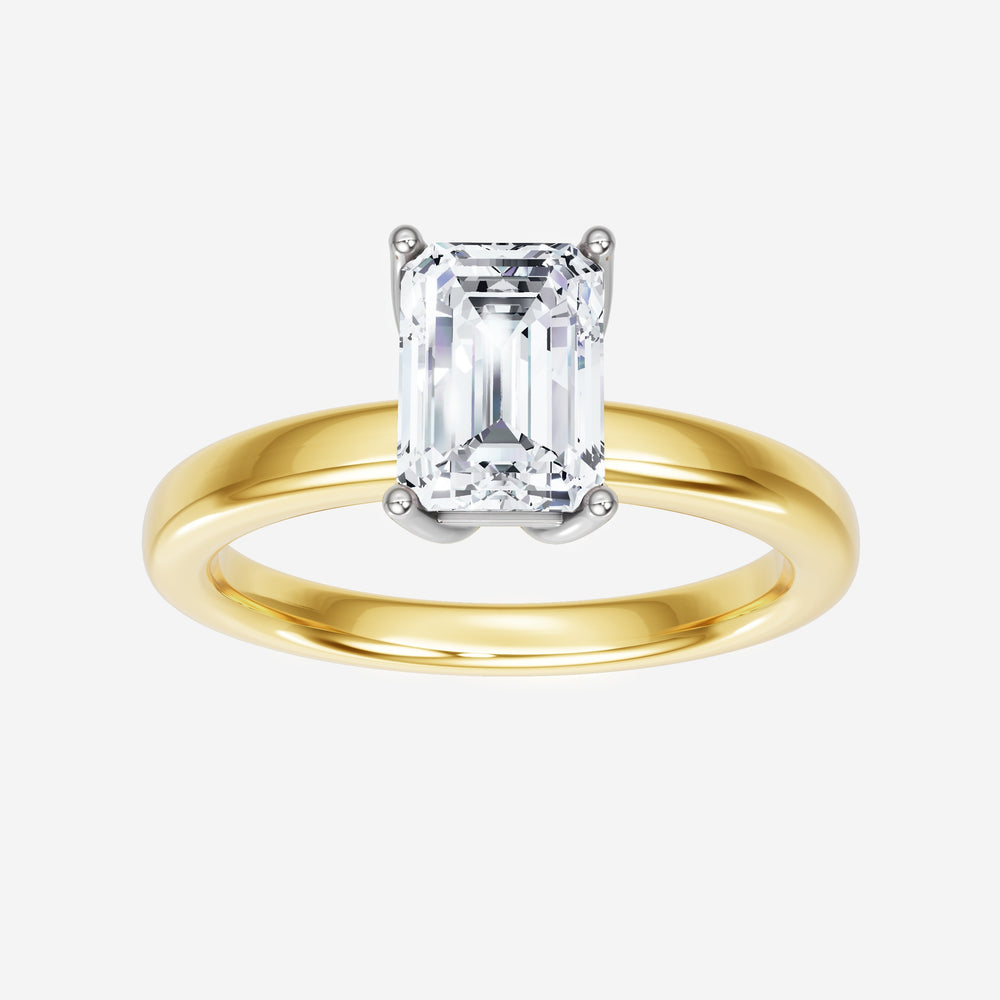 You’ve designed a ring that reflects lasting elegance and grace! Crafted from 18k Yellow White Dual Tone, this exquisite Emerald lab-grown diamond is the centerpiece of this unique design. This Basic Plain Shank with a 4 Prong Flower Head head showcases the brilliance of the Emerald diamond, creating a timeless look. This stunning ring makes the perfect symbol of everlasting love and devotion.