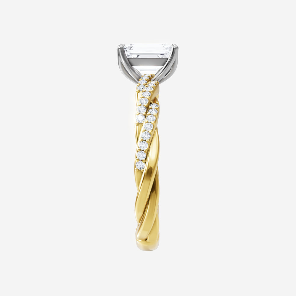 You’ve designed a ring that reflects lasting elegance and grace! Crafted from 18k Yellow White Dual Tone, this exquisite Emerald lab-grown diamond is the centerpiece of this unique design. This Rope Diamond Shank with a 4 Prong Flower Head head showcases the brilliance of the Emerald diamond, creating a timeless look. This ring will become a cherished reminder of life's most treasured moments.