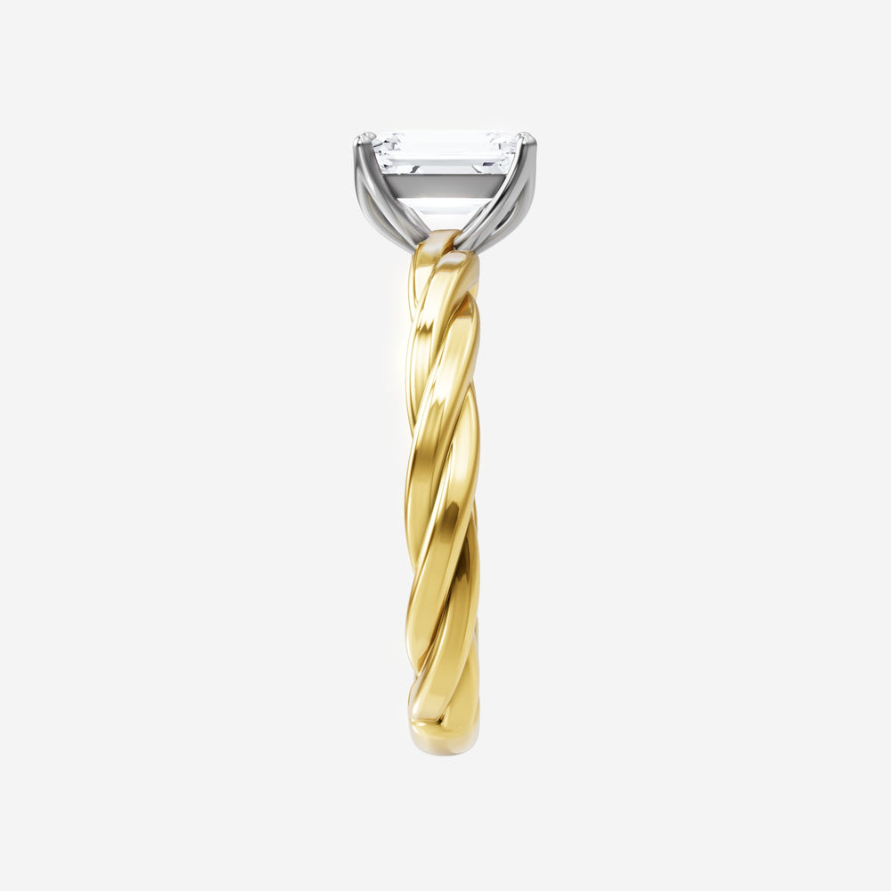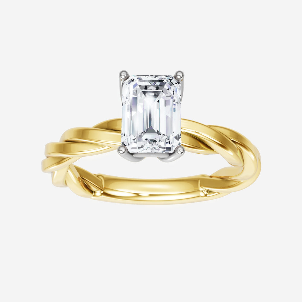 You’ve designed a ring that reflects lasting elegance and grace! Crafted from 18k Yellow White Dual Tone, this exquisite Emerald lab-grown diamond is the centerpiece of this unique design. This Rope Plain Shank with a 4 Prong Flower Head head showcases the brilliance of the Emerald diamond, creating a timeless look. This stunning ring makes the perfect symbol of everlasting love and devotion.