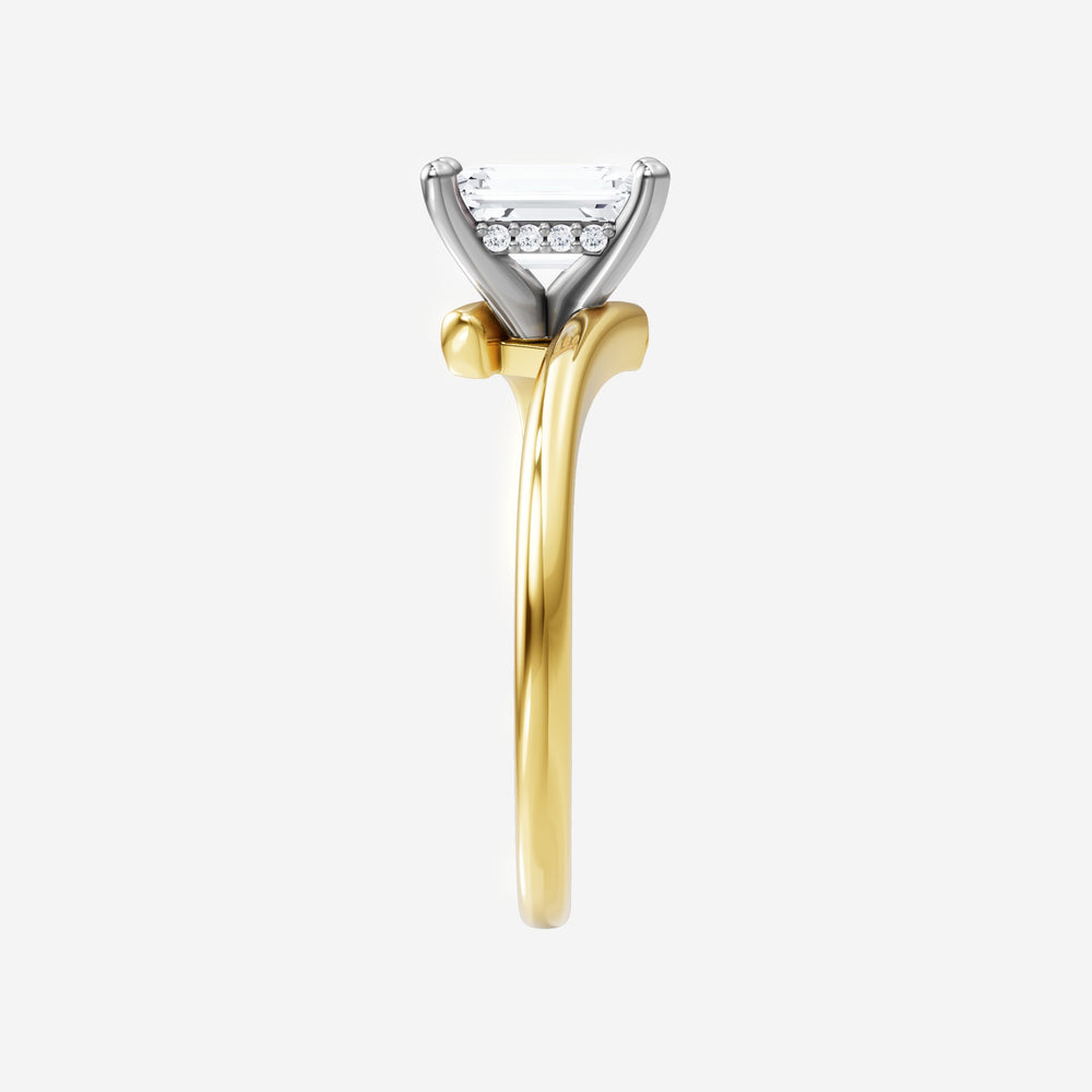 You’ve designed a ring that reflects lasting elegance and grace! Crafted from 18k Yellow White Dual Tone, this exquisite Emerald lab-grown diamond is the centerpiece of this unique design. This Bypass Shank with a Hidden Halo head showcases the brilliance of the Emerald diamond, creating a timeless look. This ring will become a cherished reminder of life's most treasured moments.