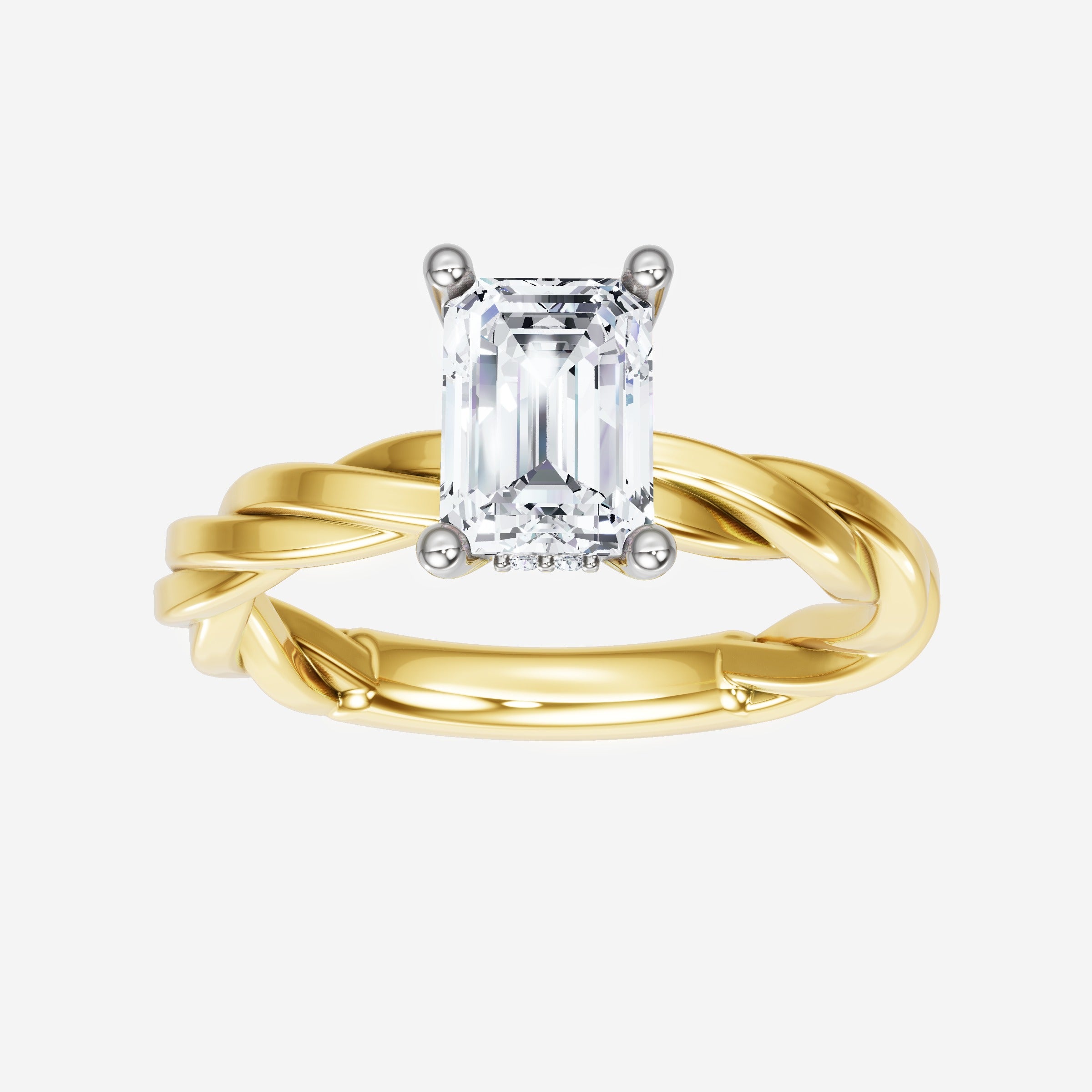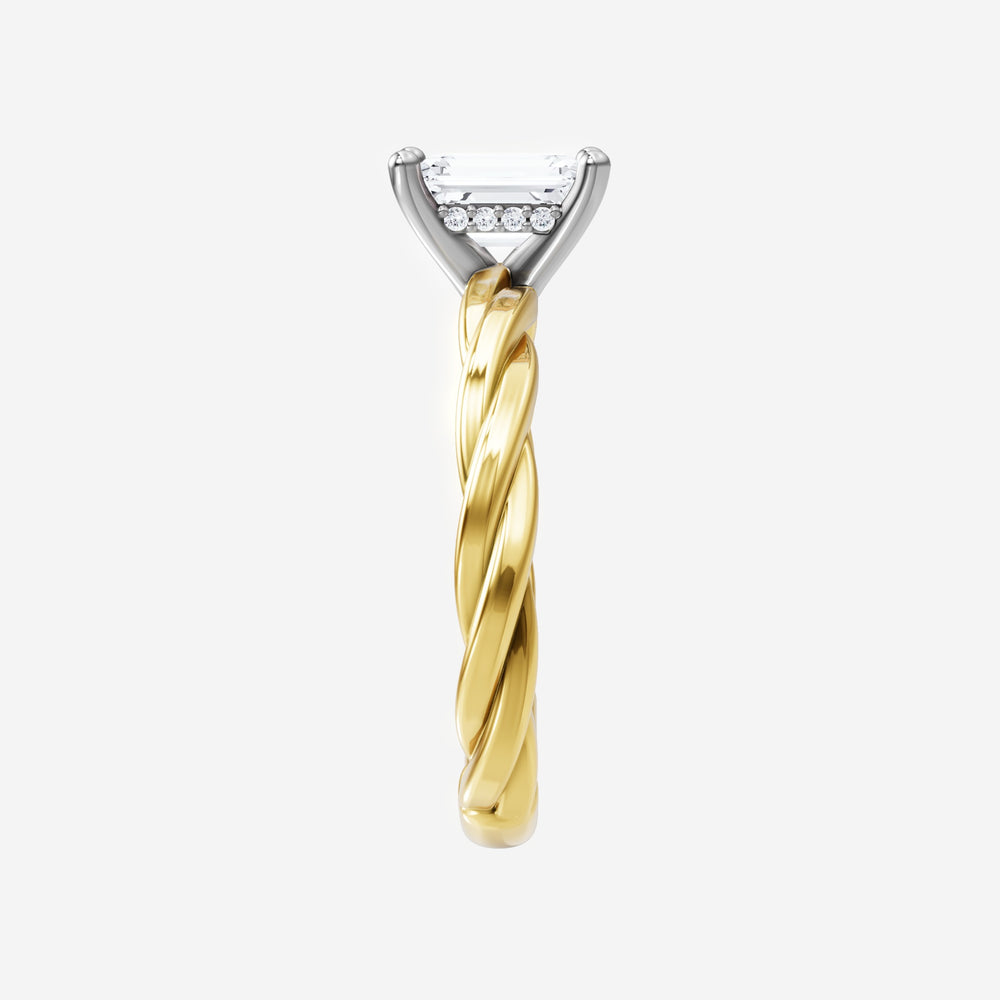 You’ve designed a ring that reflects lasting elegance and grace! Crafted from 18k Yellow White Dual Tone, this exquisite Emerald lab-grown diamond is the centerpiece of this unique design. This Rope Plain Shank with a Hidden Halo head showcases the brilliance of the Emerald diamond, creating a timeless look. Ideal for those who seek both beauty and meaning, this ring will stand as a testament to cherished memories.